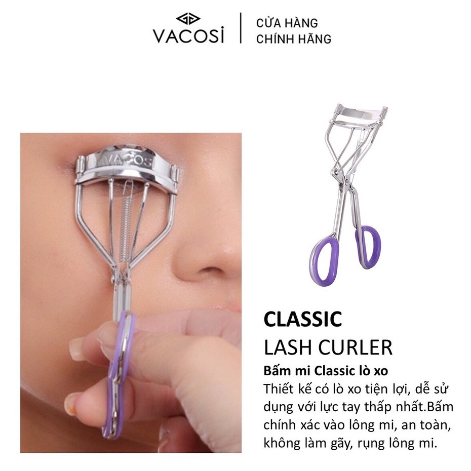 Bấm mi lò xo Vacosi Clasic Lash Curler - BM01 là bấm mi đến từ thương hiệu Vacosi với chất liệu thép không rỉ kết hợp cùng miếng đệm từ silicon cao cấp giúp uốn cong hàng mi từ gốc đến ngọn một cách hoàn hảo.