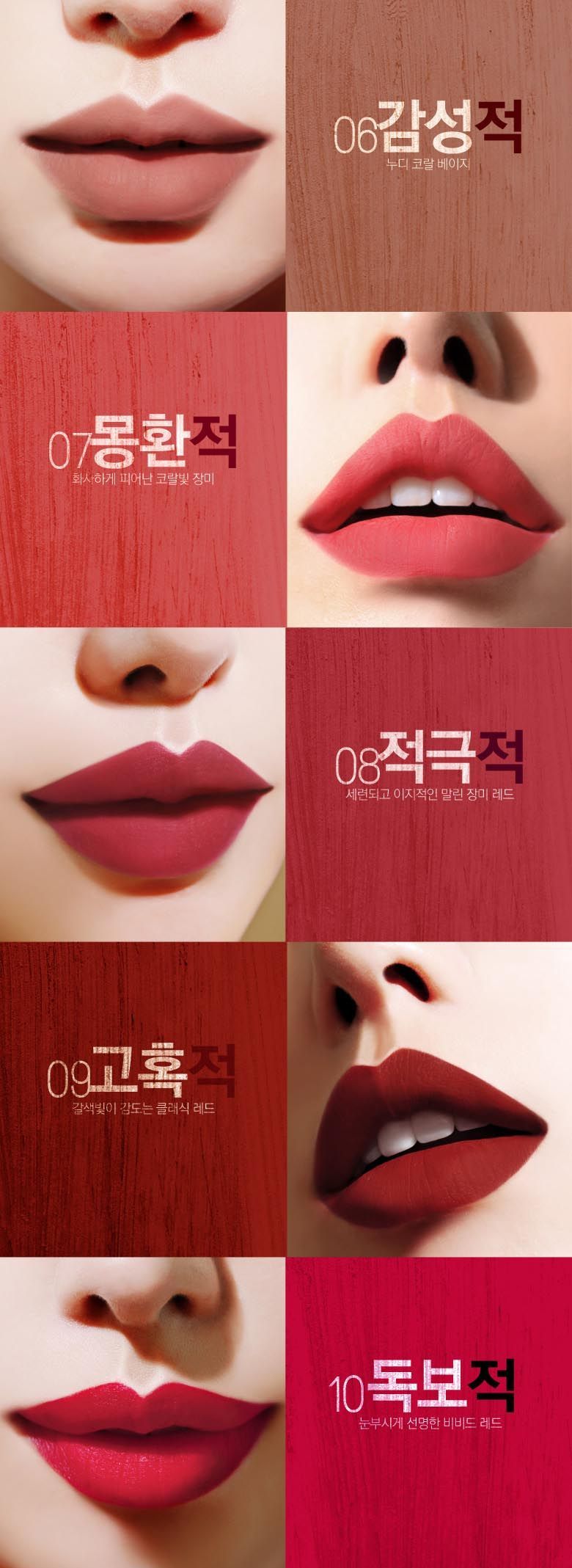 - Màu 04: Extra mood – sắc son đỏ gạch với sắc đỏ trầm và màu cam đất hòa trộn rất đẹp. Trong số 5 màu của Ver 1 thì màu số 04 này được ưa thích hơn cả. Em này có thể hợp với mọi màu da, mọi kiểu trang điểm và mọi hoàn cảnh.