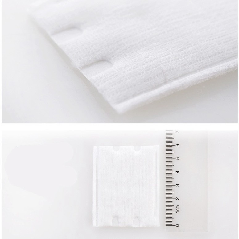 - Kích thước miếng bông lớn (6x5cm) hình chữ nhật, phù hợp sử dụng làm Lotion Mask dưỡng da.