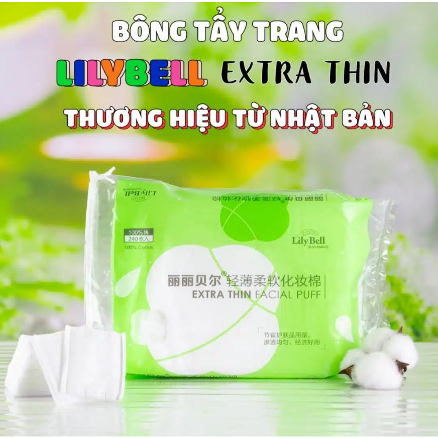 Bông Tẩy Trang LilyBell Extra Thin Facial Puff 240m (Xanh lá) là sản phẩm bông tẩy trang đến từ thương hiệu LilyBell thuộc tập đoàn dệt bông uy tín của Nhật - Suzuran, được làm từ chất liệu 100% cotton mềm mịn với làn da, không để lại xơ bông.