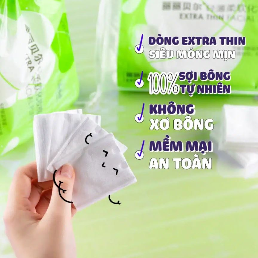 - Khả năng thấm hút tốt các dung dịch nước tẩy trang hoặc nước hoa hồng, nhẹ nhàng làm sạch da.