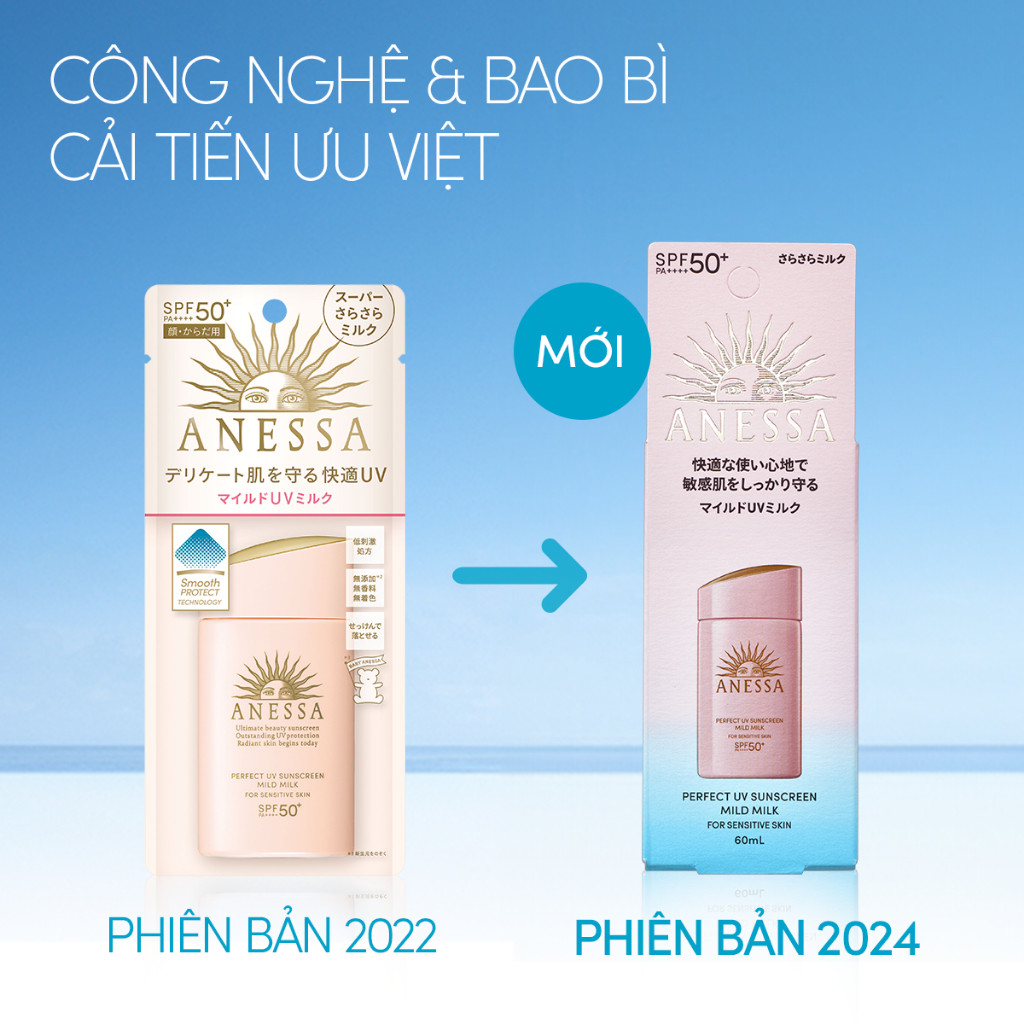 - Sữa chống nắng dịu nhẹ ANESSA Mild Milk SPF50+ PA++++ bán chạy số 1 Nhật Bản. Phiên bản mới với bao bì giấy thân thiện hơn với môi trường.