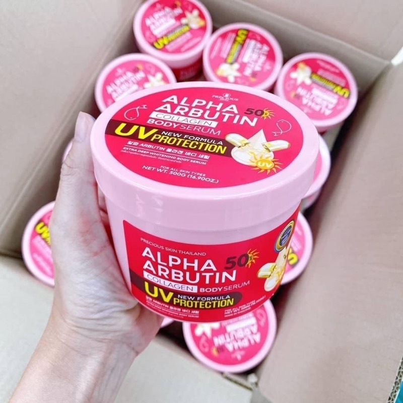 Việc sử dụng kem trắng da body là một bước rất quan trọng trong quá trình chăm sóc da. Chính vì thế việc làm đẹp và dưỡng da ngày nay bằng kem body đang rất được các chị em ưa chuộng. Kem dưỡng da trắng body vừa giúp cải thiện sắc tố da, làm dịu da, vừa giúp làm dịu lại phần da chịu tổn thương từ bên ngoài môi trường. Một trong số những sản phẩm kem dưỡng trắng da nổi tiếng phải kể đến là Kem dưỡng trắng chống nắng toàn thân Alpha Arbutin Collagen SPF50 New UV Cream Protection. Được xuất xứ tại Thái Lan, Alpha Arbutin Body Cream chứa các hoạt chất Alpha Arbutin và Glutathione gấp 3 lần giúp dưỡng trắng hiệu quả và an toàn.