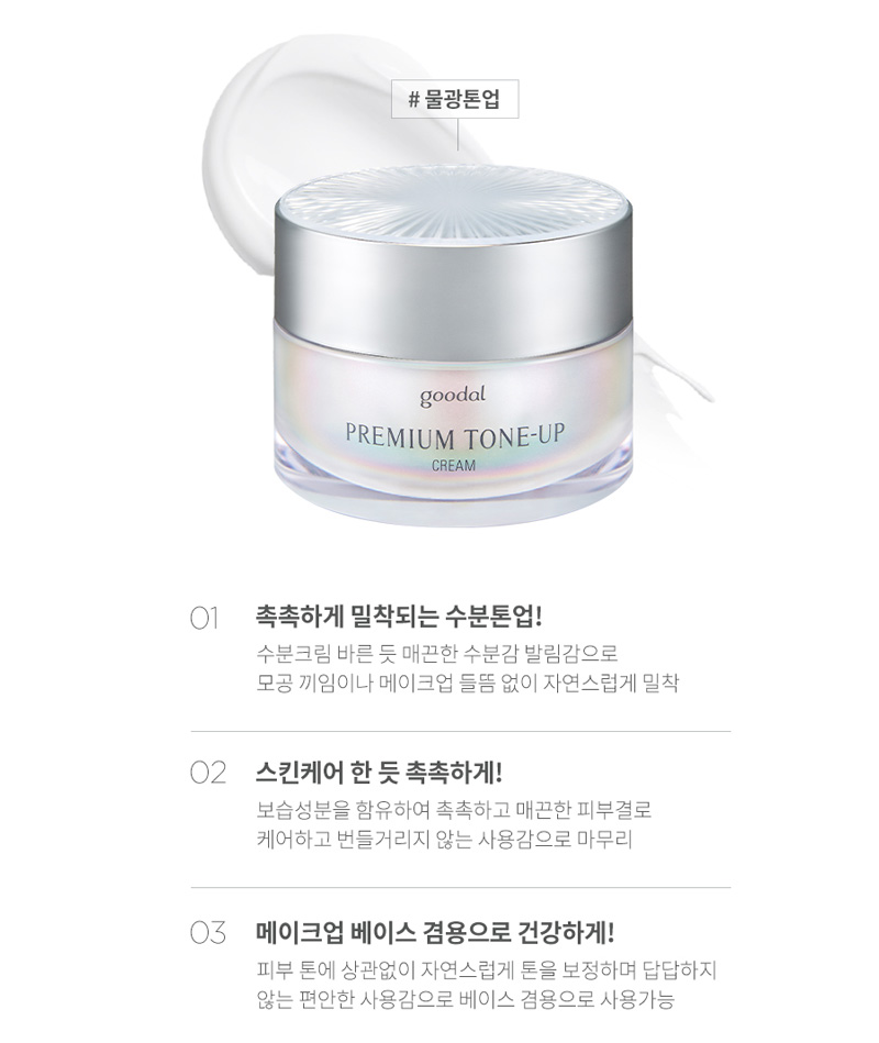 Kem Dưỡng Trắng Da Và Nâng Tone Da Tức Thì Goodal Premium Snail Tone-Up Cream là kem dưỡng nâng tông thuộc thương hiệu Goodal giúp che phủ lỗ chân lông và hiệu chỉnh làn da tối màu mang đến hiệu ứng trắng sáng tự nhiên với các thành phần như tơ tằm, sữa ong chúa, ngọc trai và tơ tằm.
