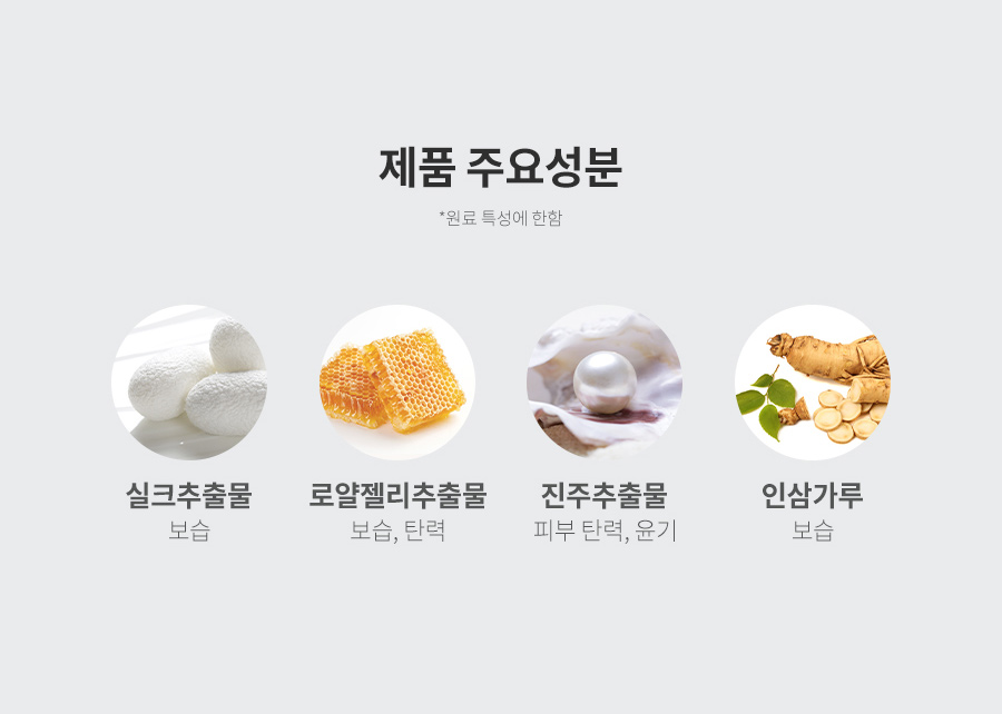 - Ngoài ra còn chứa thành phần Tơ tằm, Nhân Sâm có khả năng cung cấp độ ẩm và bổ sung đầy đủ nguồn dinh dưỡng cần thiết cho làn da. Tơ tằm là một thành phần dưỡng ẩm tuyệt vời, nó tạo ra một trận giữ nước, duy trì độ khỏe mạnh cho màng bảo vệ để tăng cường sức đề kháng cho da.