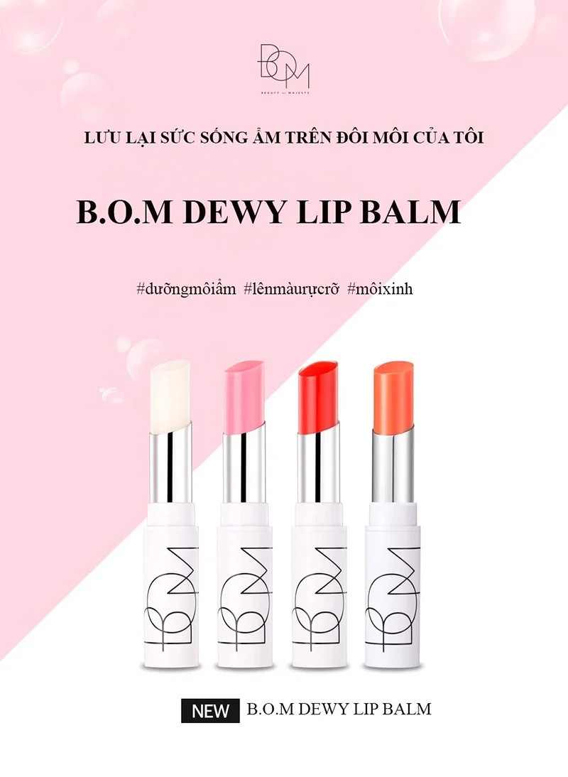 Chỉ với một lớp son môi mỏng nhẹ sẽ khiến gương mặt bạn trở nên rạng ngời, sáng bừng sức sống. Sau đây Garden Shop xin giới thiệu đến bạn Son Dưỡng Có Màu B.O.M Dewy Lip Balm với thành phần chính là chiết xuất từ bơ hạt mỡ sẽ giúp chăm sóc cho làn môi của bạn thêm phần căng mọng, mịn màng trông thấy. Cùng tông màu hồng ngọt ngào, dịu dàng sẽ giúp biến hóa khuôn mặt bạn trở nên tươi tắn, xinh yêu hơn hẳn.