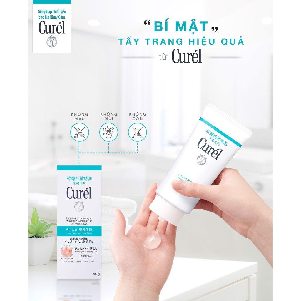 - Gel Tẩy Trang Cấp Ẩm Chuyên Sâu Curél Intensive Moisture Care Makeup Cleansing Gel với kết cấu dạng gel mềm, dịu nhẹ, không gây nhờn rít, tạo cảm giác da sạch dễ chịu