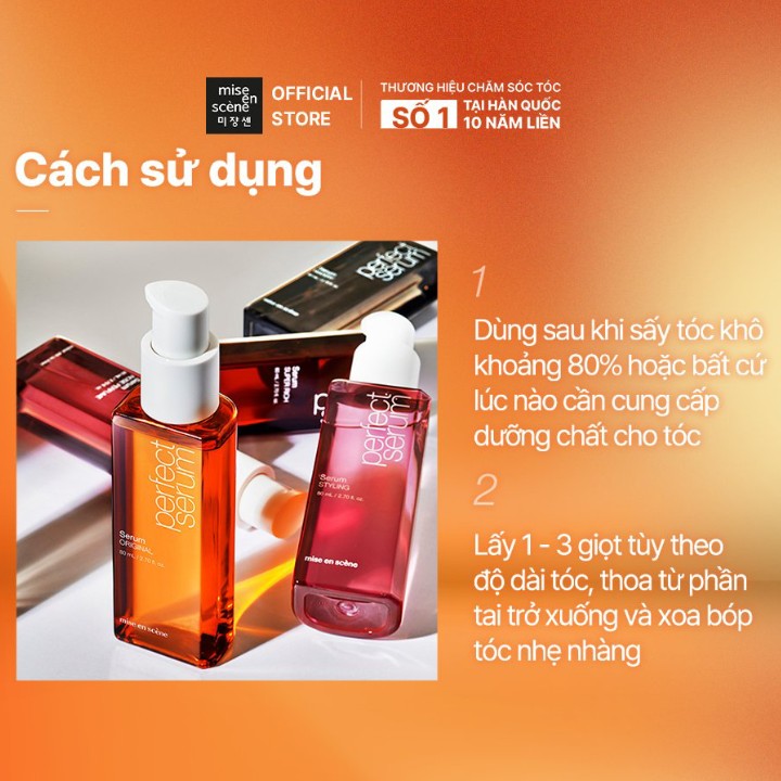 Sử dụng kết hợp với các sản phẩm chăm sóc tóc dòng Perfect Serum để đạt được kết quả tốt nhất: