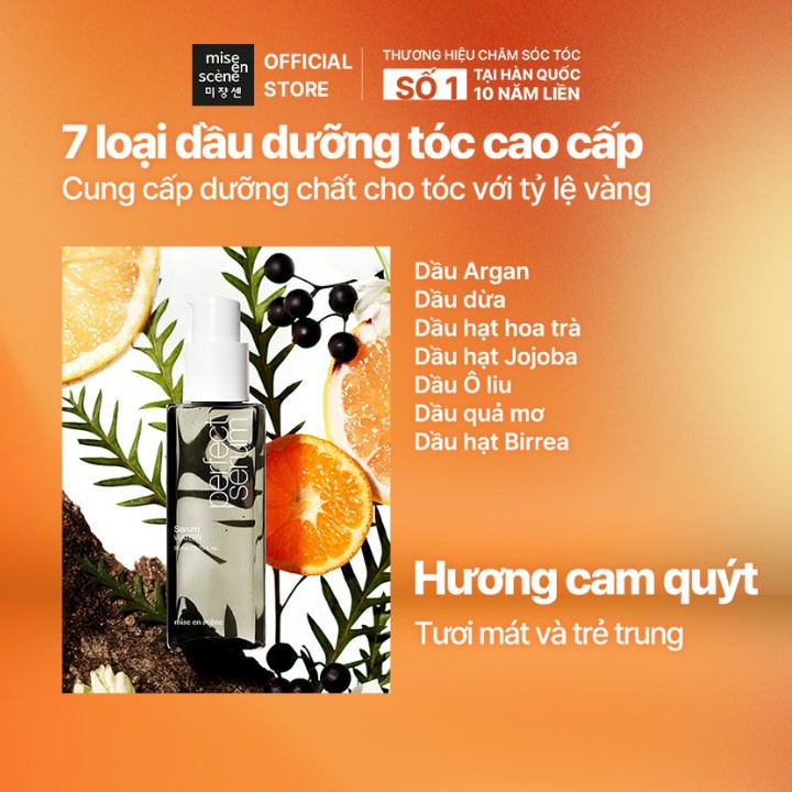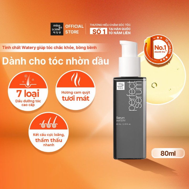 Tinh Chất Dưỡng, Phục Hồi Tóc, Giữ Nếp Tóc Khi Tạo Kiểu hương cam quýt tươi mát Perfect Serum Watery 80ml giúp tóc chắc khỏe, bồng bềnh dành cho tóc nhờn dầu là dòng sản phẩm dầu dưỡng tóc bóng mượt hoàn hảo. Công thức độc quyền kết hợp hoàn hảo 7 loại dầu thiên nhiên với tỷ lệ vàng – giúp hỗ trợ phục hồi tóc, chăm tóc suôn mượt hoàn hảo được cải tiến trong diện mạo mới.
