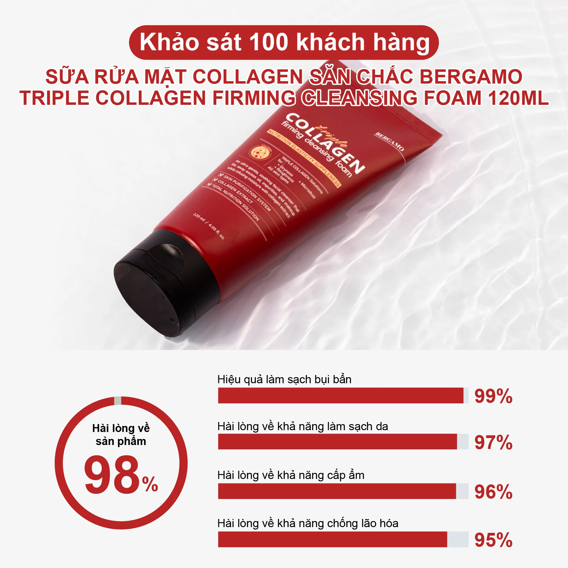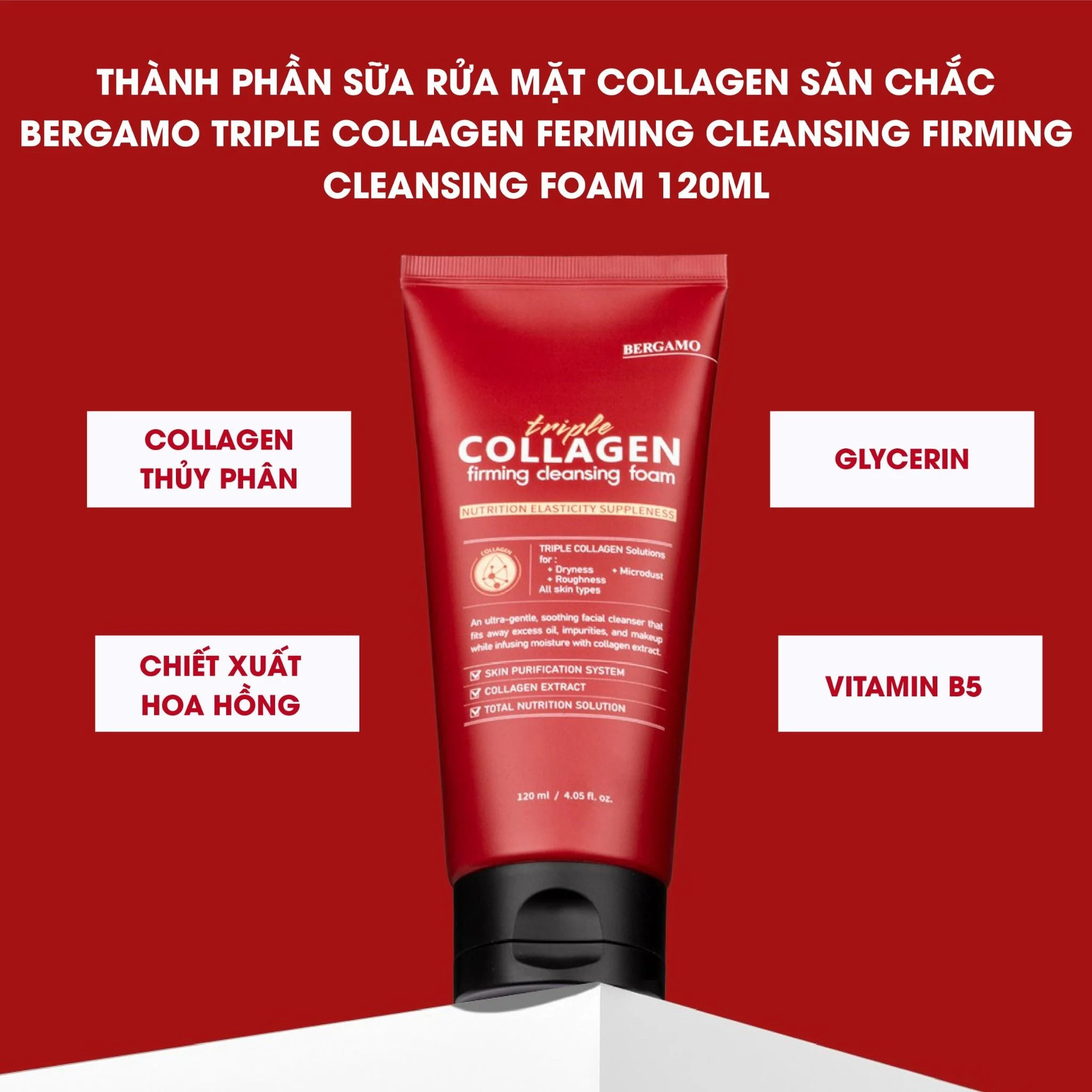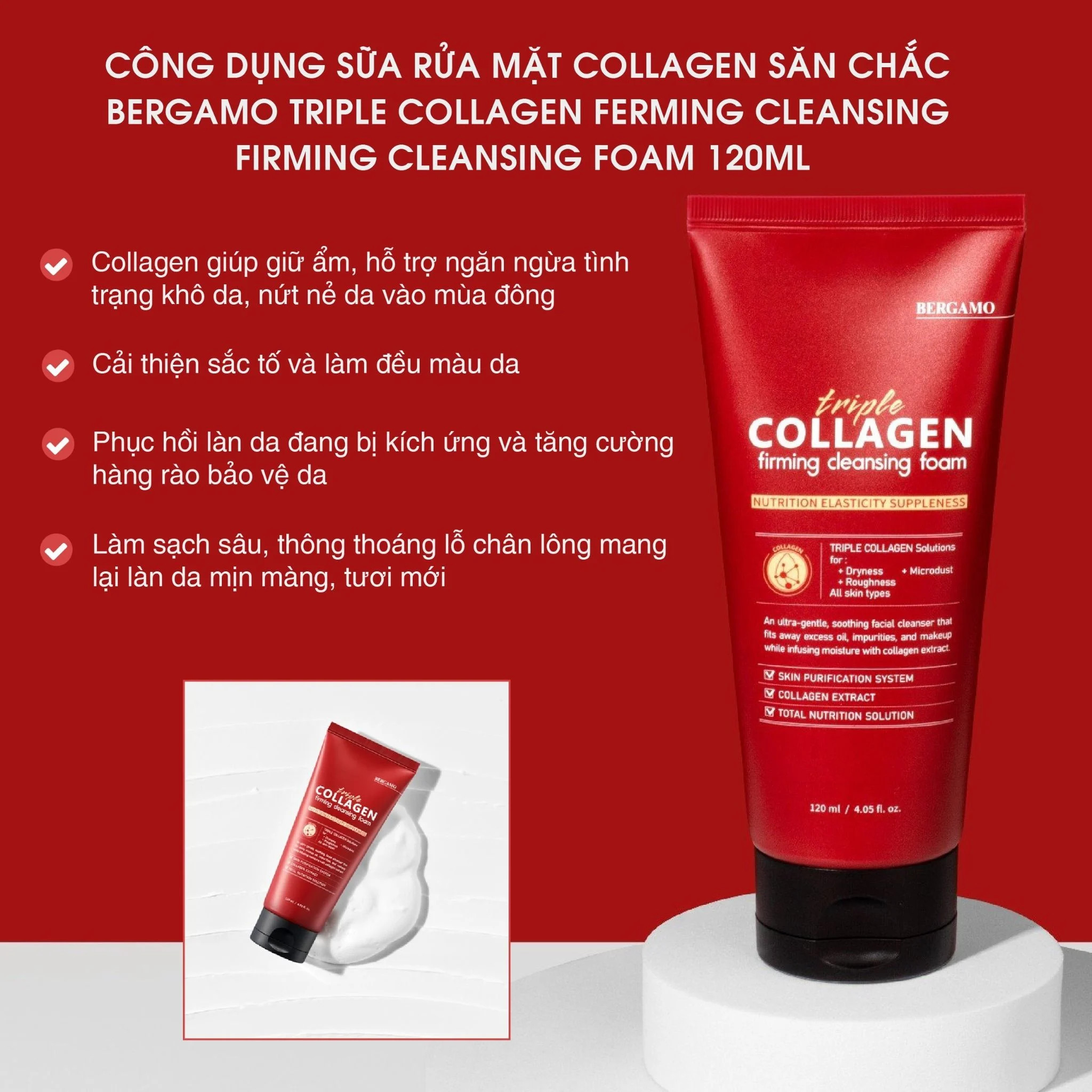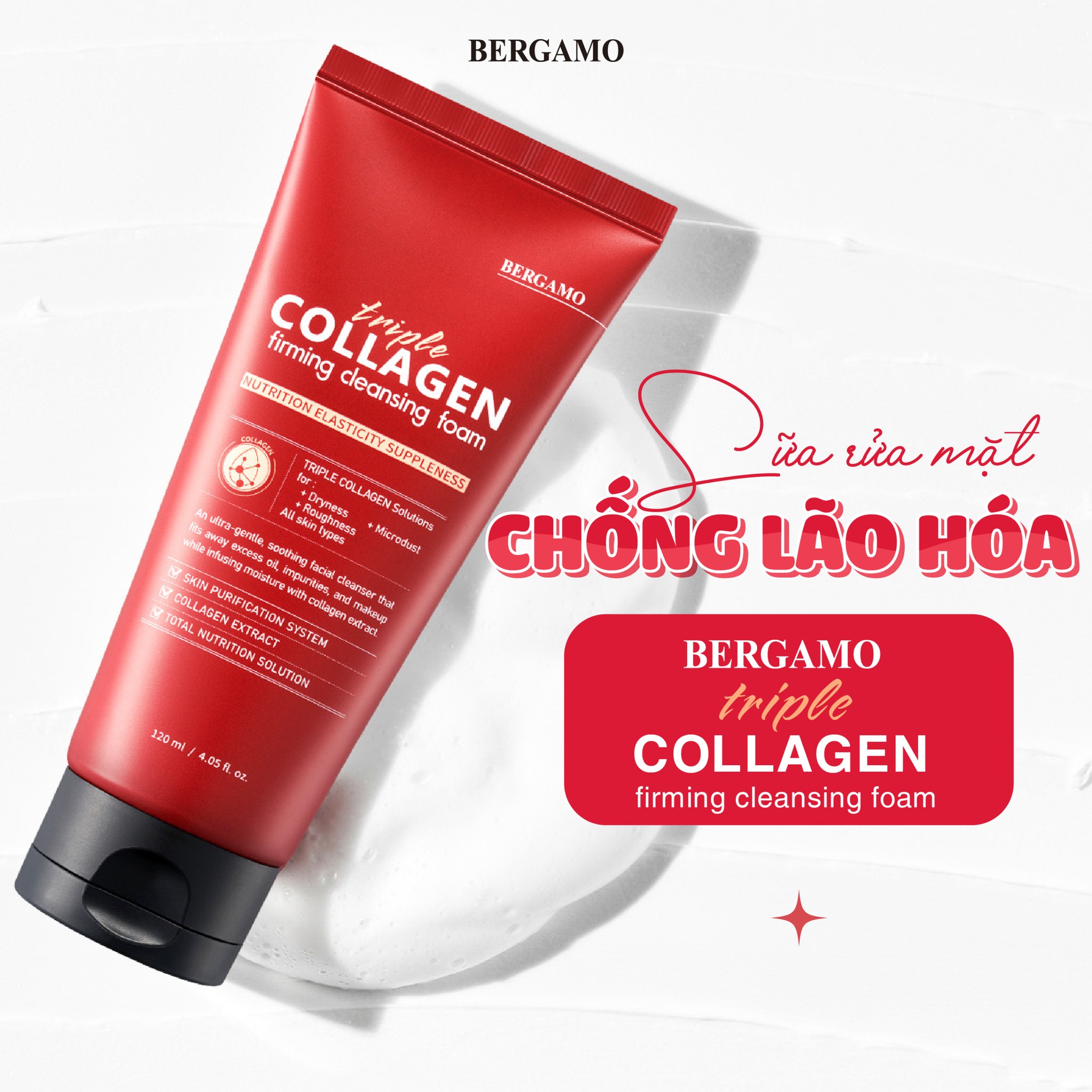 Sữa Rửa Mặt Collagen Săn Chắc Bergamo Triple Collagen Cleansing Foam 120ml là sản phẩm đến từ thương hiệu Bergamo - Thương hiệu mỹ phẩm uy tín và lâu đời tại Hàn Quốc. Các sản phẩm sữa rửa mặt từ Bergamo giúp cung cấp độ ẩm và làm sạch chuyên sâu giúp da săn chắc và không bị căng da sau khi rửa mặt.