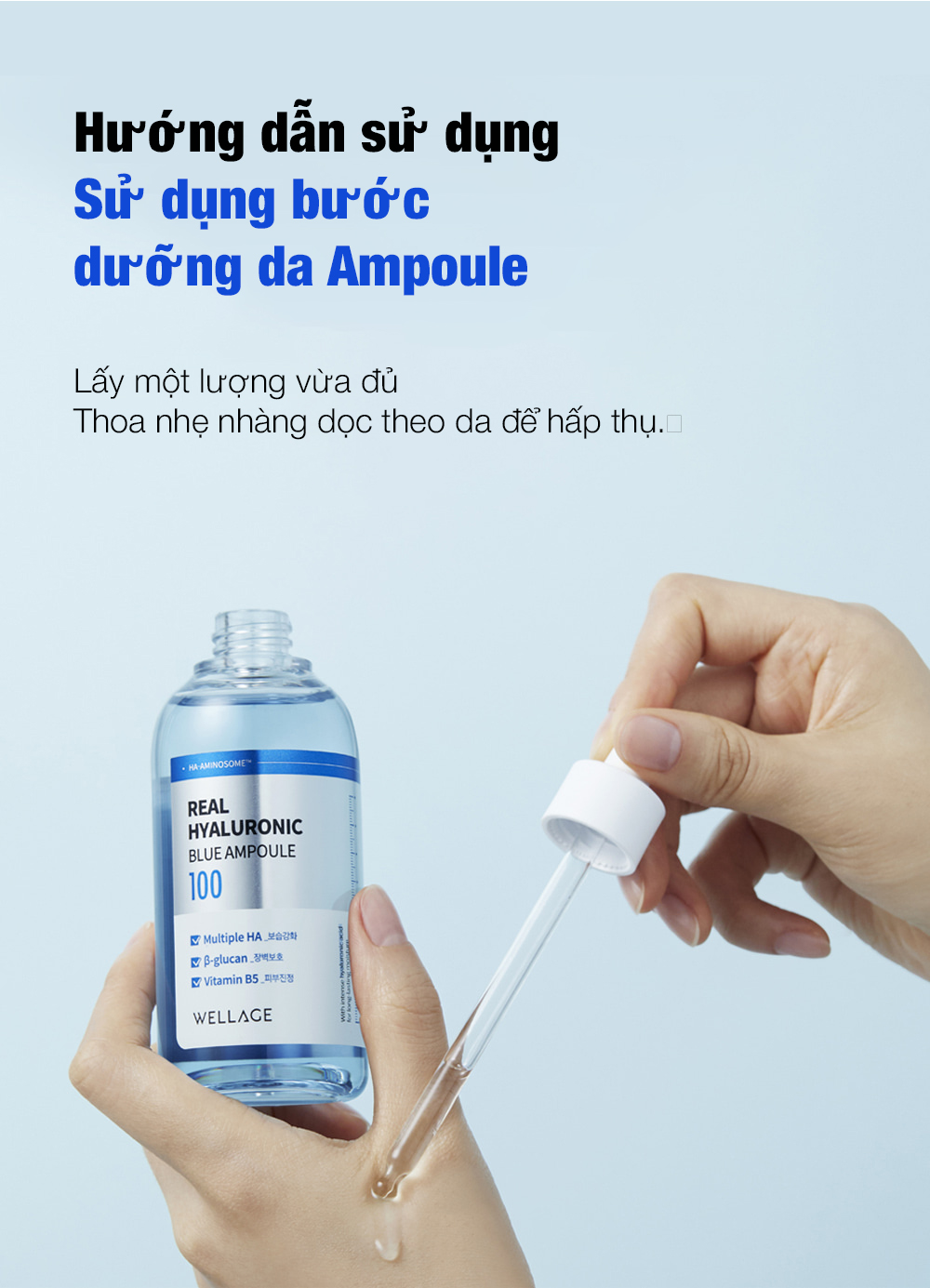 - Tinh chất Wellage Real Hyaluronic Blue Ampoule có 3 thành phần chính rất quan trọng cho làn da thiếu nước