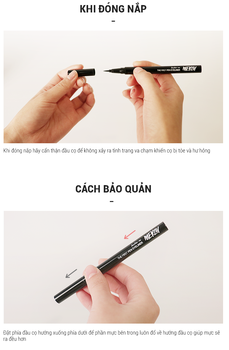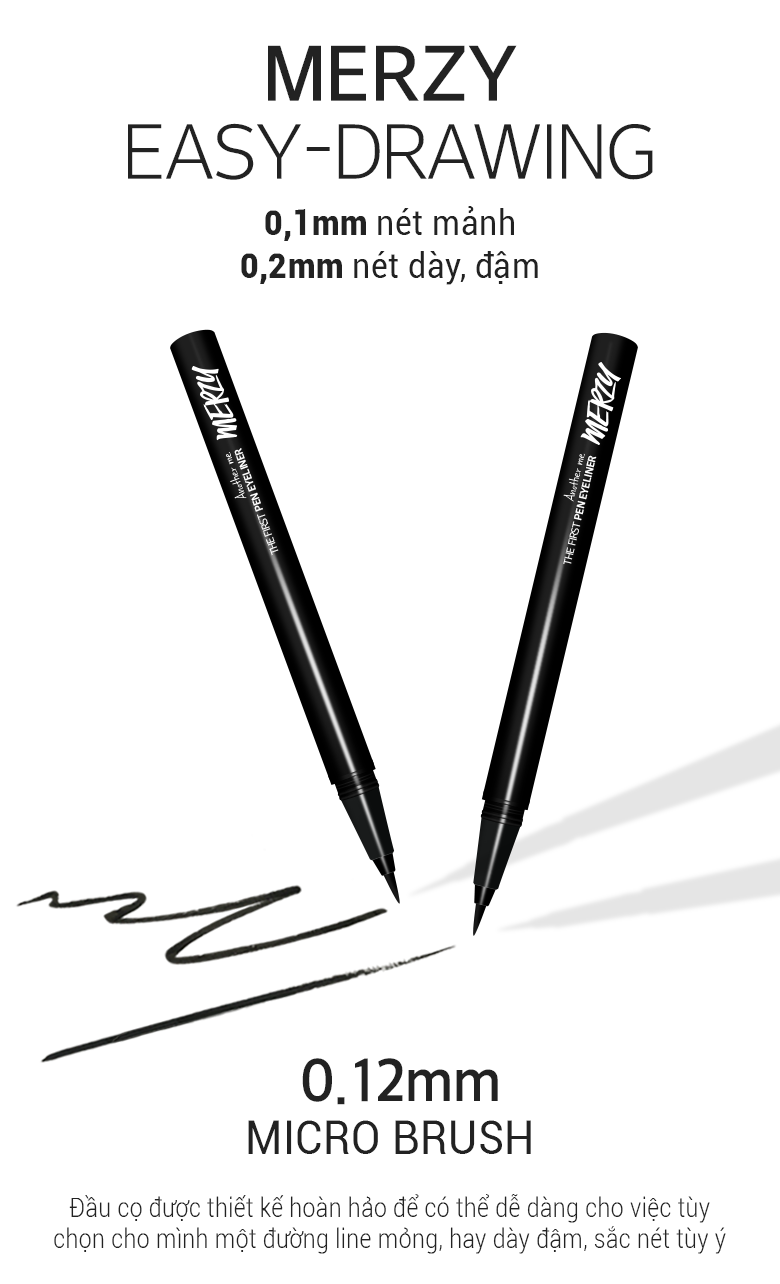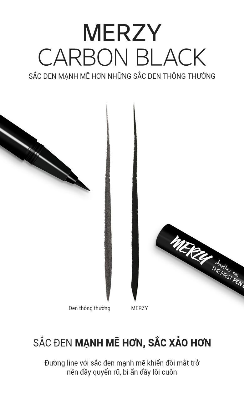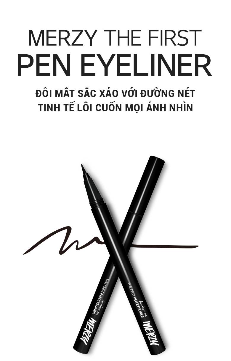 - Bút kẻ mắt nước Merzy Another Me The First Pen Eyeliner hiện tại đã có tại Garden Shop có thiết kế đầu bút mảnh dễ vẽ, dễ tạo đường mắt mỏng tinh tế, giúp dễ dàng điều chỉnh từ nét mảnh đến nét dày.