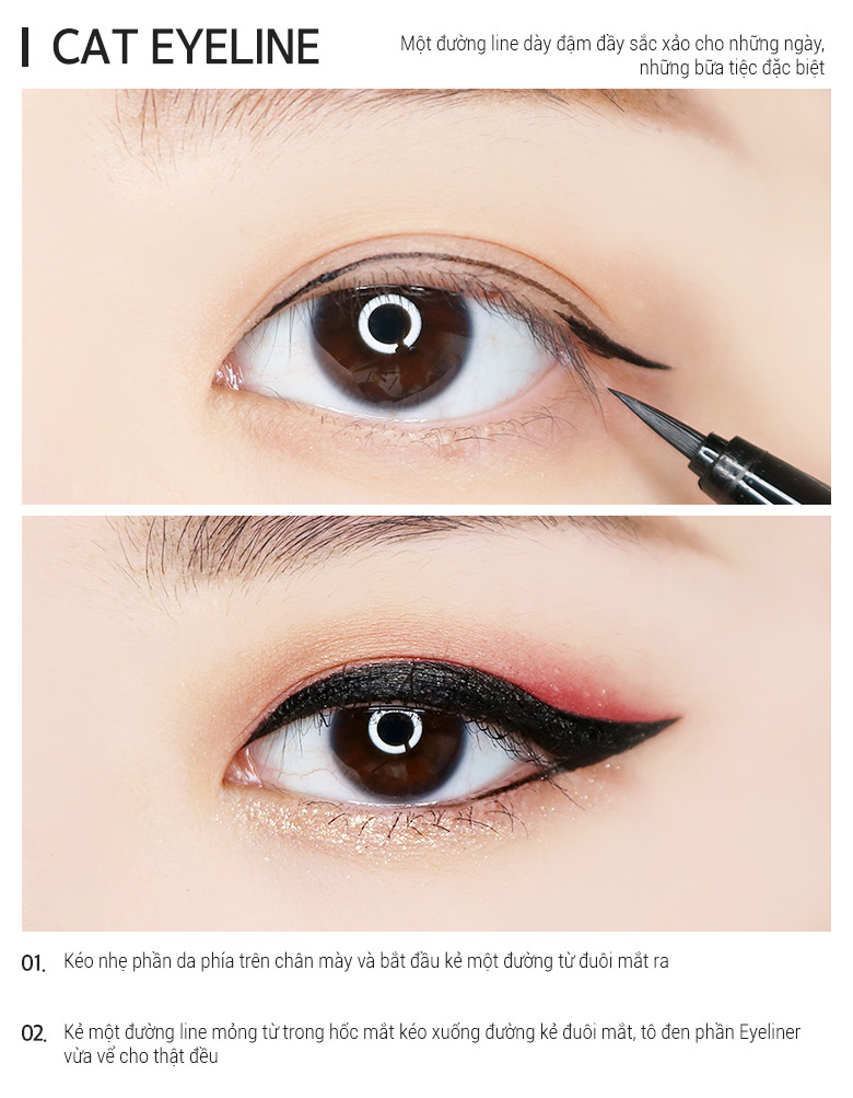 - Eyeliner đậm nét, giúp bạn tạo ra một đường kẻ sắc sảo, đen tuyền