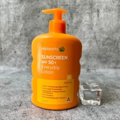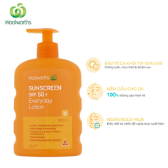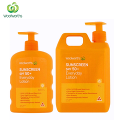Kem Chống Nắng Phổ Rộng Bảo Vệ Da Của Úc Woolworths Sunscreen SPF 50+ Everyday Lotion 500mL/1000L đến từ thương hiệu Woolworths nổi tiếng và là sản phẩm nội địa Úc – nơi người dân vốn bị ám ảnh bởi ung thư da. Vì thế, các sản phẩm liên quan thường đi kèm khả năng chống nắng ở cường độ “cao ngất” ( chỉ số SPF 50+ cao nhất theo quy định của Australia và có thể chịu nước trong 4 tiếng).