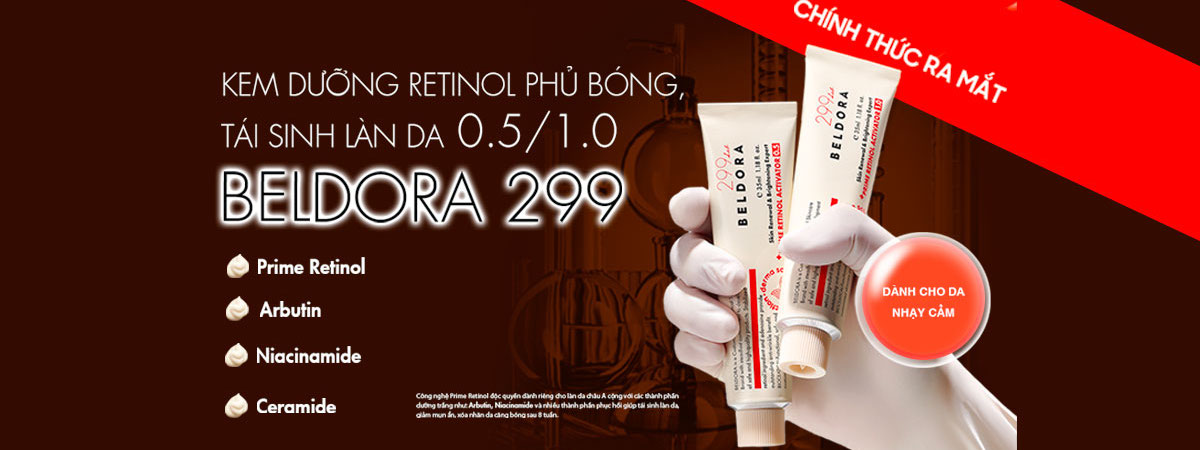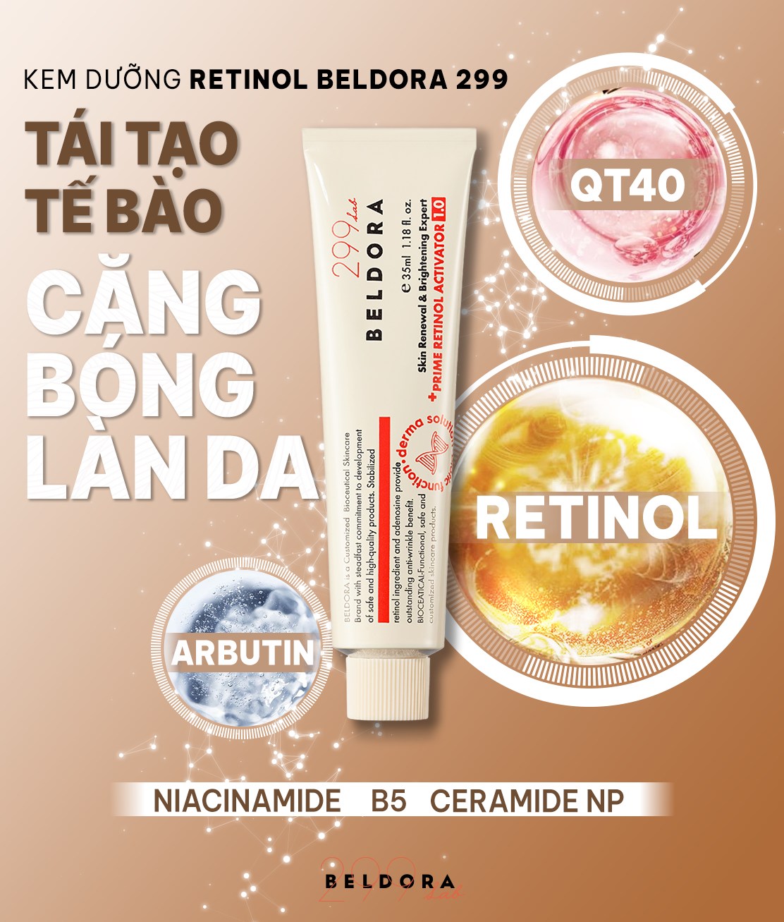 Kem Dưỡng Beldora 299 Giảm Mụn Ẩn, Tái Tạo Da 35ml là sản phẩm kem dưỡng dành cho ban đêm đến từ thương hiệu mỹ phẩm Beldora 299 của Hàn Quốc, chứa thành phần retinol 1.0 ngăn ngừa các dấu hiệu lão hóa da, làm đầy nếp nhăn, kích thích sản sinh collagen, tăng độ đàn hồi và săn chắc cho. Ngoài ra, sản phẩm còn chứa Niacinamide, Arbutin và các thành phần khác giúp dưỡng sáng, đều màu da, làm mờ thâm nám và hỗ trợ se khít lỗ chân lông. Công phức dành riêng cho làn da Châu Á và thích hợp trên da nhạy cảm.