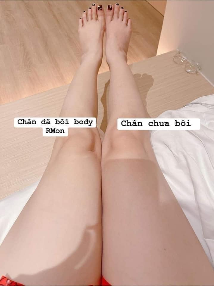- Lấy một lượng kem Rmon vừa đủ thoa đều lên toàn thân, chú ý những nơi như cổ, lưng, tay chân, khuỷu tay, đầu gối,… và massage nhẹ nhàng khoảng 1 – 2 phút để các dưỡng chất được thẩm thấu sâu hơn.