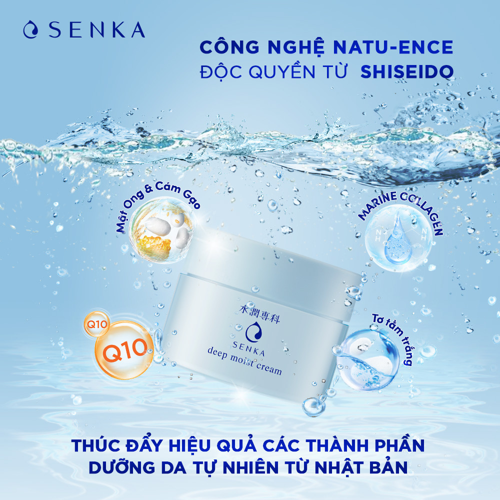 - Sử dụng công nghệ chuyển hóa kem dưỡng độc quyền của Senka, chất kem rất giàu dưỡng chất nhưng vẫn dễ dàng chuyển hóa thành các phân tử nhỏ giúp tăng khả năng tan nhanh và thẩm thấu sâu vào lớp biểu bì, giúp các dưỡng chất phát huy tối đa tính năng cấp nước, giữ ẩm cho từng lớp cấu tạo da, phục hồi độ ẩm cho làn da mịn màng nhanh chóng.