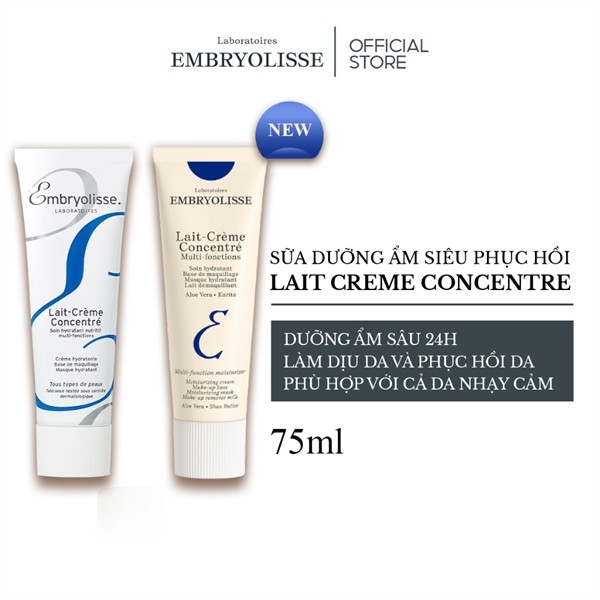 Kem Dưỡng Ẩm Embryolisse Lait-Crème Concentré là sản phẩm kem dưỡng đa năng đến từ thương hiệu Embryolisse của Pháp, với các thành phần tự nhiên lành tính, không gây dị ứng, hỗ trợ cấp nước, giữ ẩm cho làn da luôn căng bóng, mềm mịn và rạng rỡ. Kết cấu sản phẩm dạng kem sữa, phù hợp làm lớp lót trước trang điểm, kem dưỡng ẩm hoặc mặt nạ dưỡng da, mang lại sự thoải mái cho cả những làn da khô & nhạy cảm nhất.