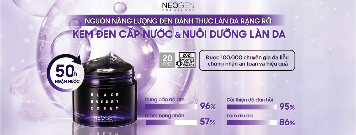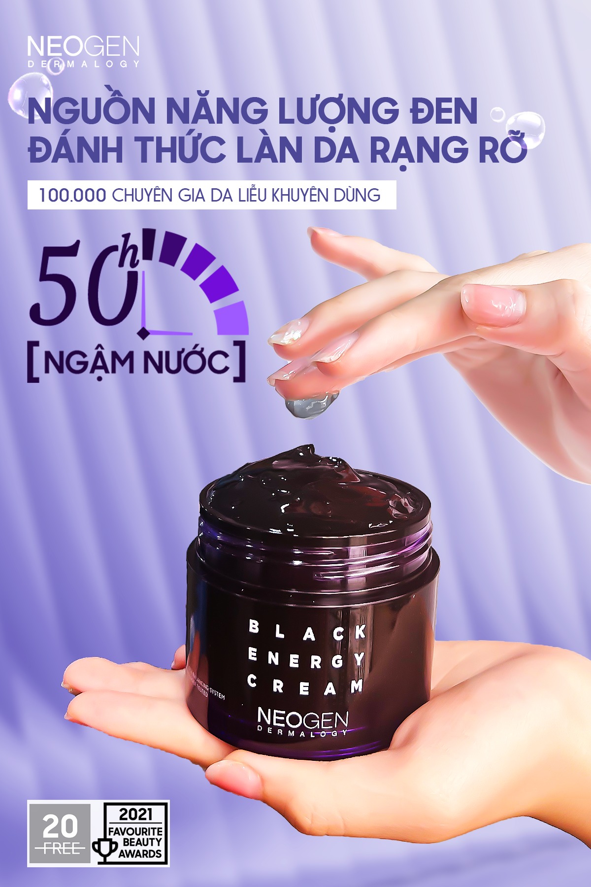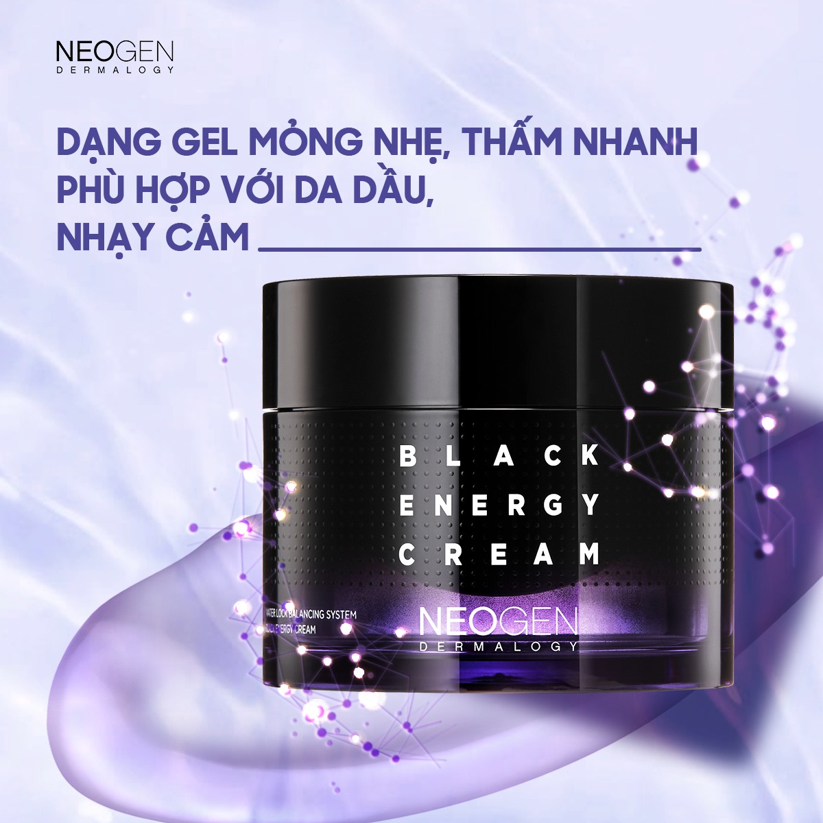 - Kem Dưỡng Cấp Nước, Tăng Độ Đàn Hồi Da Neogen Black Energy Cream dưỡng ẩm giúp cân bằng lượng độ ẩm trên da điều tiết dầu thừa, bã nhờn, se khít lỗ chân lông, tăng cường hàng rào bảo vệ da giúp tăng độ đàn hồi và cải thiện nếp nhăn, làm dịu và phục hồi các vết mẩn đỏ cho làn da rạng rỡ, tươi mát.