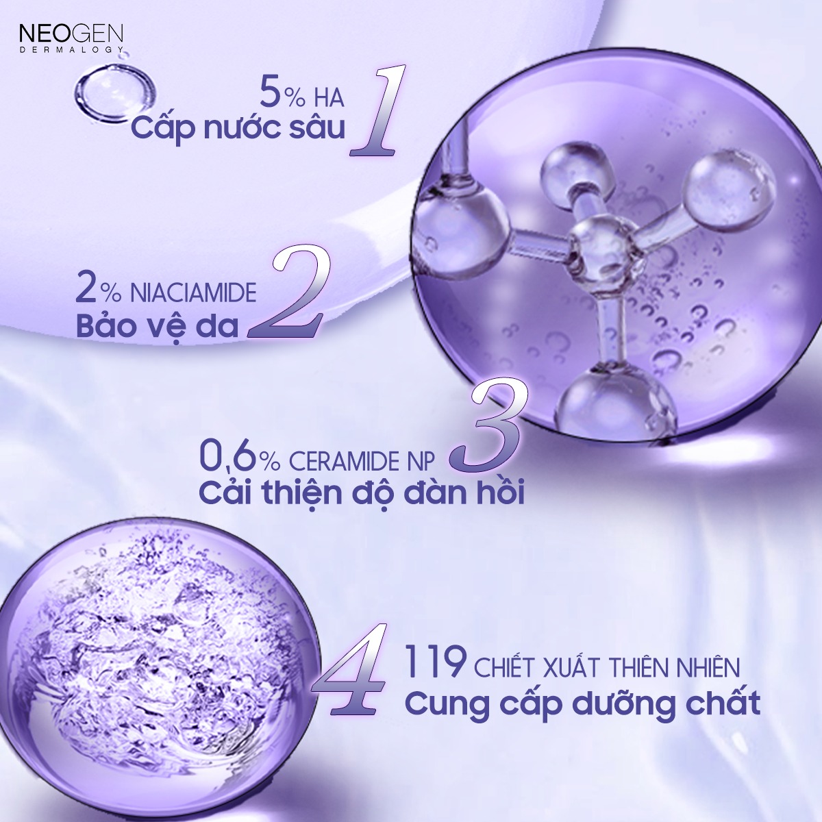 - 0.6% Ceramide NP tăng cường hàng rào bảo vệ trên da tối ưu giúp tăng độ đàn hồi và cải thiện nếp nhăn.