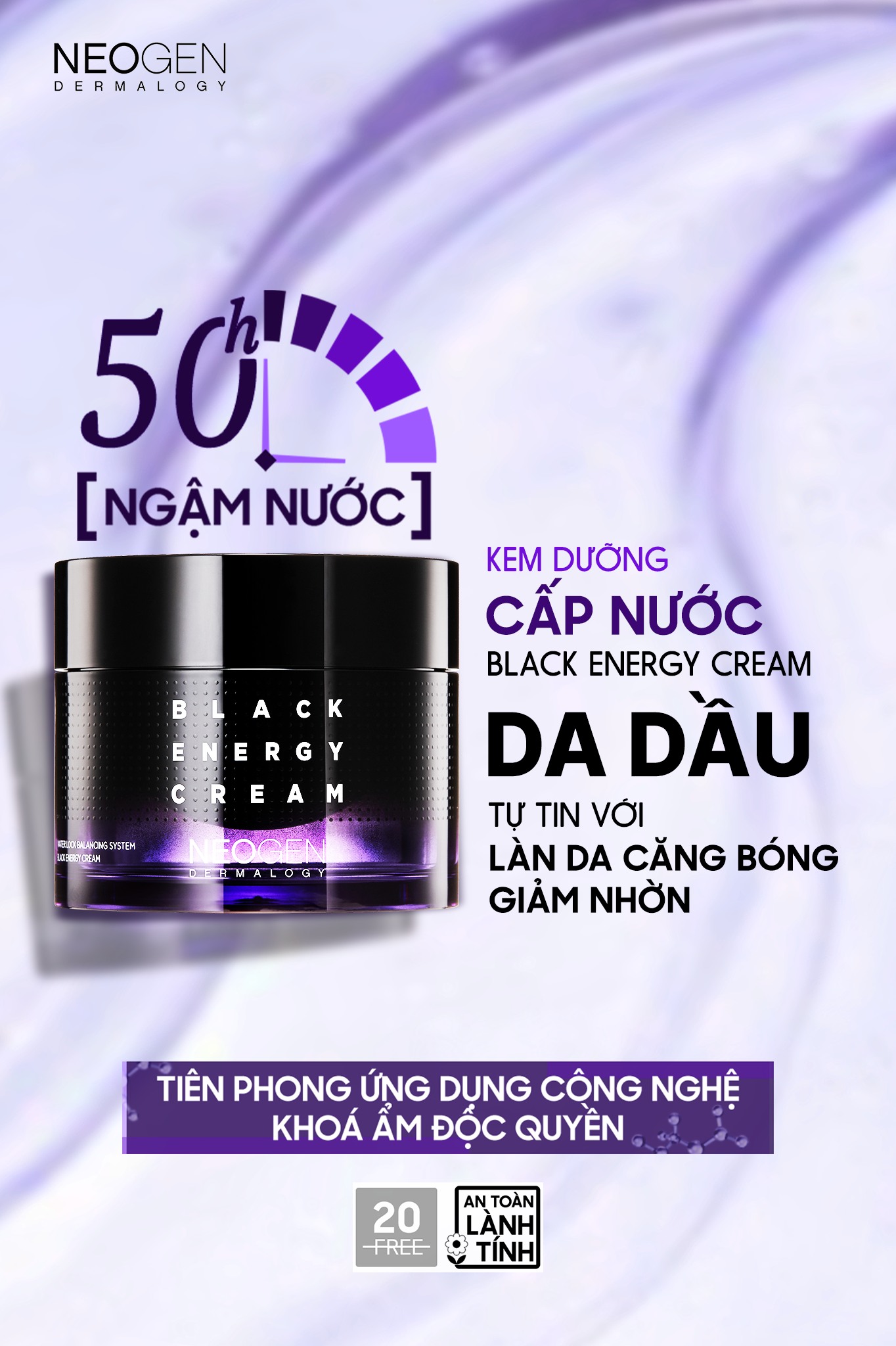 Kem Dưỡng Cấp Nước, Tăng Độ Đàn Hồi, Cải Thiện Nếp Nhăn Cho Da Dầu Và Da Nhạy Cảm Neogen Black Energy Cream là kem dưỡng thuộc thương hiệu Neogen. Với công nghệ khóa ẩm độc quyền Water Lock với 5% HA được chia thành 6 loại kích thước Nano khác nhau giúp thẩm thấu vào từng lớp tế bào, mang đến hiệu quả cấp nước vượt trội đến 50 giờ cùng với các dưỡng chất khác giúp nuôi dưỡng làn da khỏe mạnh, sáng mịn và đều màu.