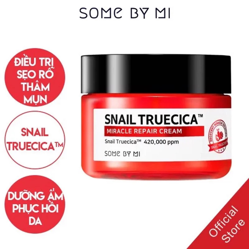 - Kem Dưỡng Ẩm, Phục Hồi, Giúp Da Săn Chắc, Đàn Hồi Chiết Xuất Ốc Sên Some By Mi Snail Truecica Miracle Repair Cream với thành phần chính chứa Black Snail 880,000 ppm - Chiết xuất ốc sên đen giúp sửa chữa mô hư hỏng giảm tình trạng sẹo rỗ,kích thích làm lành vết thương và dịu các vùng da bị ửng đỏ.