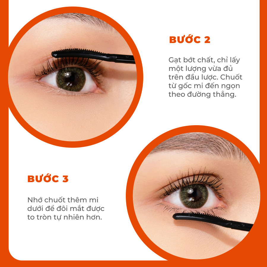 - Bước 3: Dùng đầu cọ lược chải từ gốc mi đến ngọn mi để mi được tơi, dài và cong. Đừng bỏ quên phần đầu mắt để giúp hiệu ứng mắt to tròn.