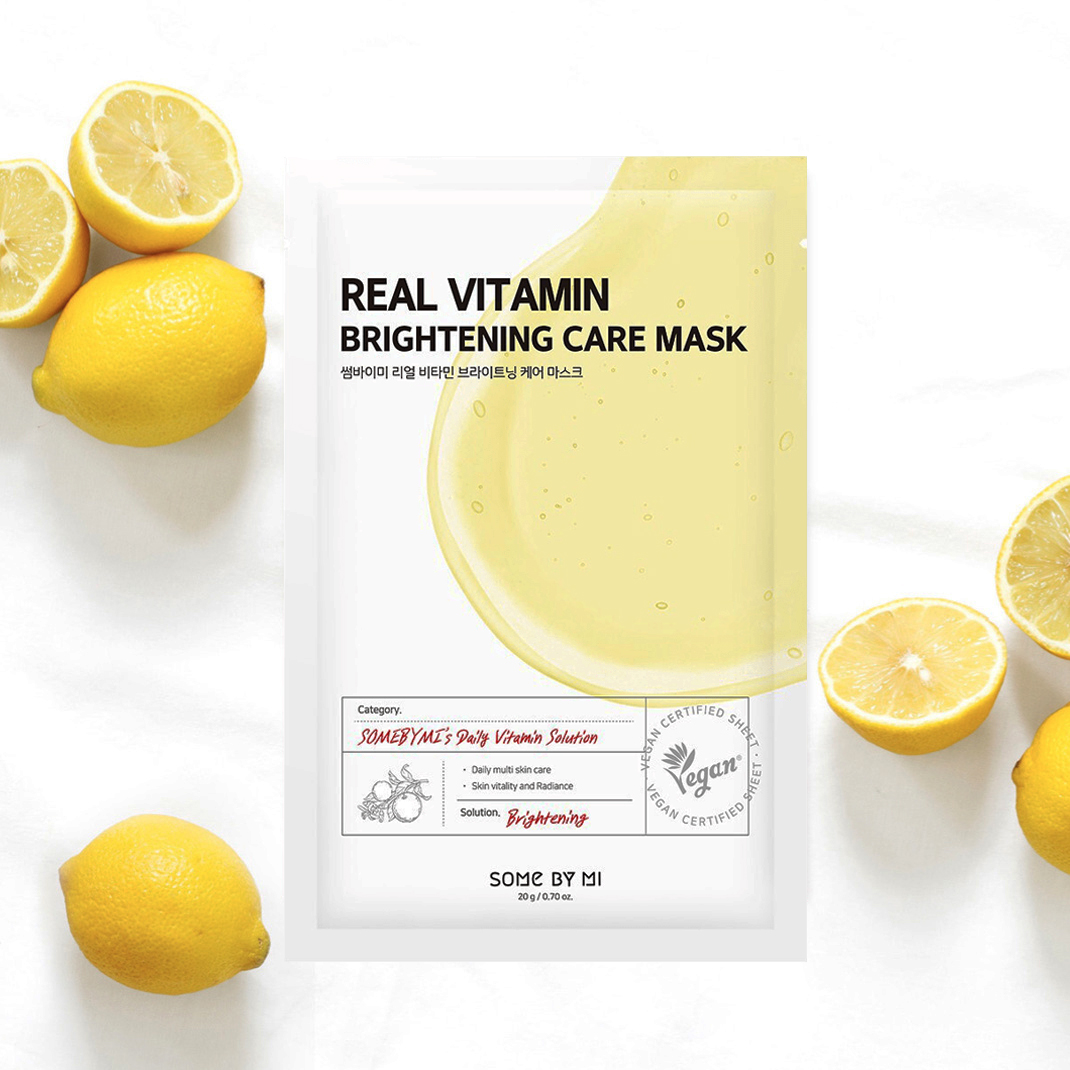 Mặt Nạ Giấy Dưỡng Trắng Da Some By Mi Real Care Sheet Mask 20g là dòng mặt nạ giấy “hot hit” nhà Some By Mi với các chiết xuất thiên nhiên và giàu dưỡng chất giúp da cung cấp độ ẩm, làm dịu da, hỗ trợ điều trị mụn cho làn da khoẻ mạnh, tràn đầy sức sống và mềm mại hơn. Với công thức không chứa 20 chất hóa học gây hại cho da, giàu dưỡng chất, cung cấp và duy trì độ ẩm, cải thiện hiệu quả các vẫn đề của làn da, kết cấu mặt nạ mỏng nhẹ, ôm sát bề mặt da khi sử dụng tăng khả năng hấp thụ dưỡng chất.