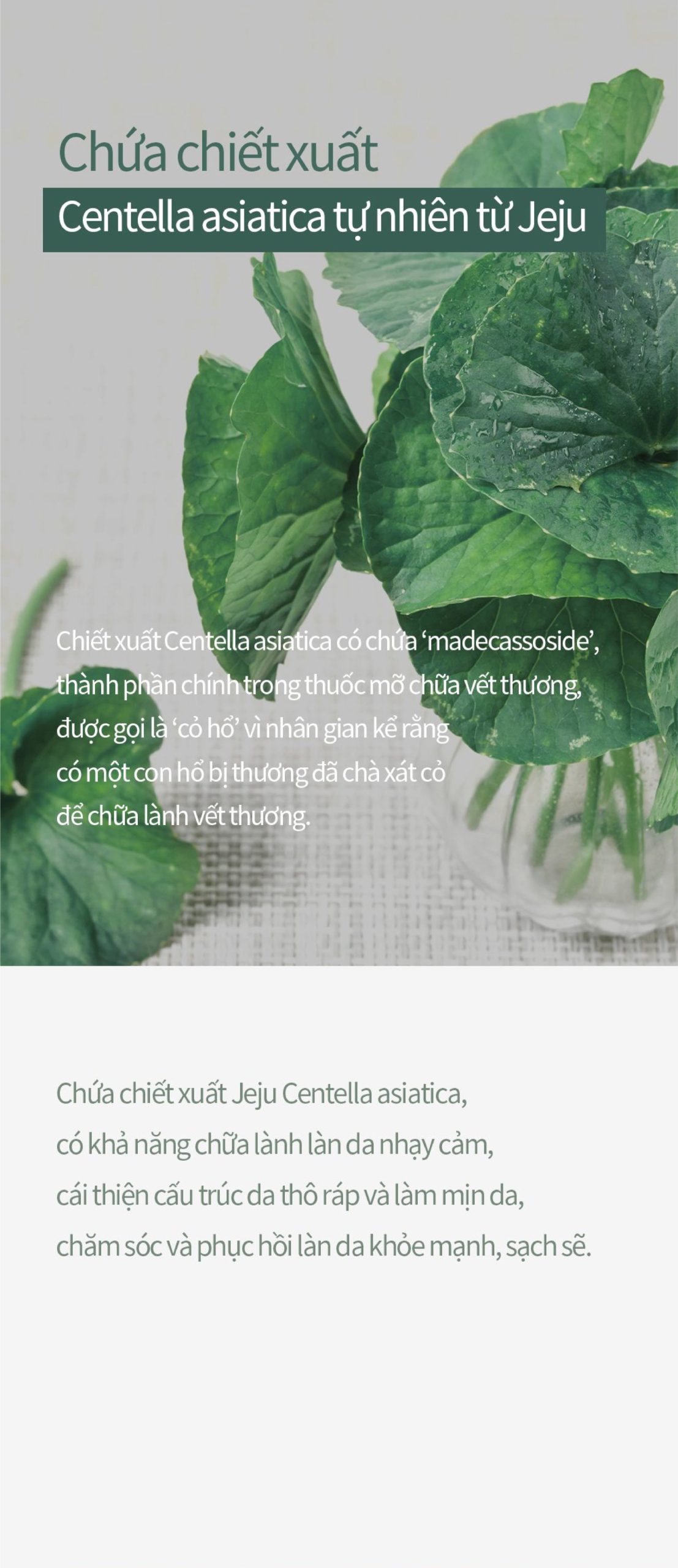 - Chiết xuất từ rau má với khả năng làm dịu, khôi phục làn da đang bị kích ứng, cải thiện độ ẩm, chứa chất oxi hóa giúp da tươi mới, rạng rỡ.