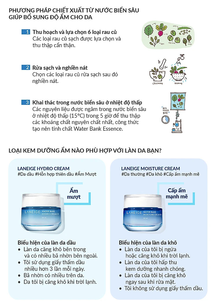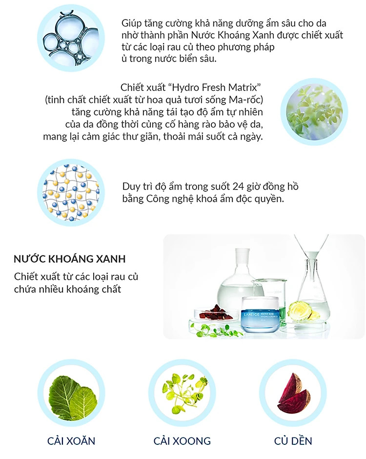 Kem Dưỡng Ẩm Laneige Cấp Nước Cho Da Dầu, Da Hỗn Hợp là dòng kem dưỡng đến từ thương hiệu mỹ phẩm cao cấp Laneige của Hàn Quốc, với thành phần chính là nước khoáng xanh được chiết xuất từ các loại rau củ theo phương pháp ủ trong nước biển sâu giúp củng cố khả năng dưỡng ẩm tự nhiên của làn da, dưỡng ẩm sâu cho làn da trở nên ẩm mượt, trong trẻo và rạng rỡ.