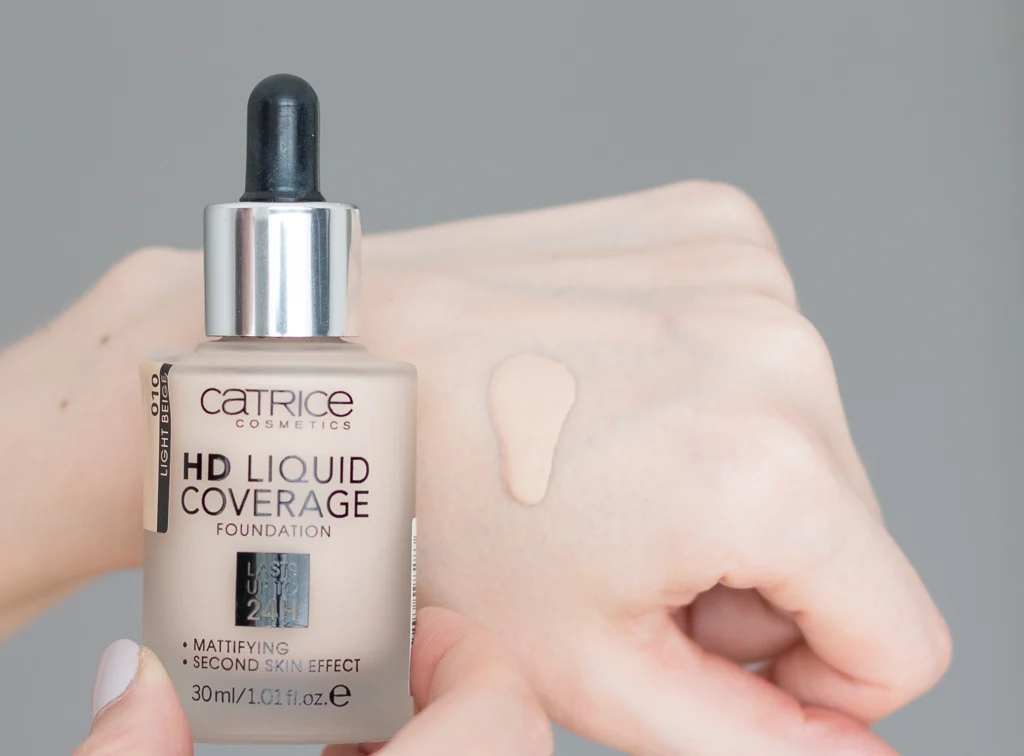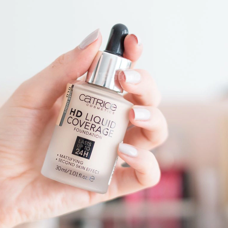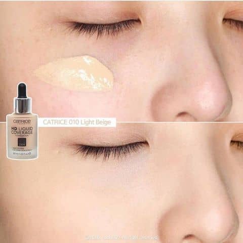 Kem Nền Catrice HD Liquid Coverage Foundation tạo một lớp nền mỏng, đều màu, trong suốt. Không chỉ là sản phẩm trang điểm mà kem còn có tác dụng như một loại kem dưỡng. Một nghiên cứu về da liễu cho thấy chỉ sau 8 tuần sử dụng hàng ngày, các đốm sẫm màu có thể sáng lên trông thấy, ngăn ngừa sự ửng đỏ trên da.