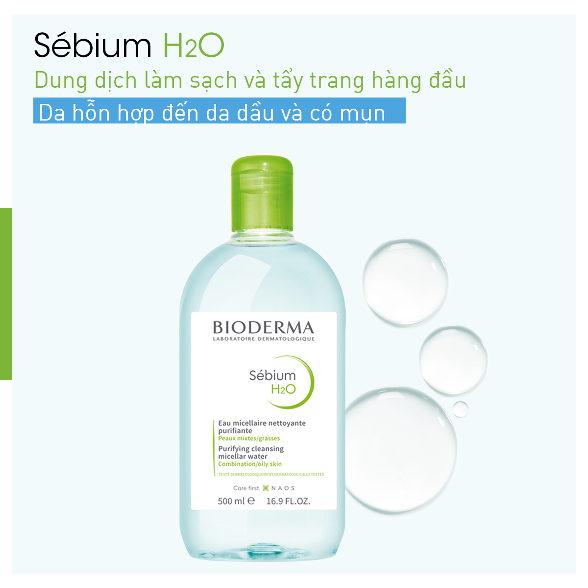 2. Nước Tẩy Trang Cho Da Dầu, Da Hỗn Hợp, Da Mụn Bioderma Senbium H2O: