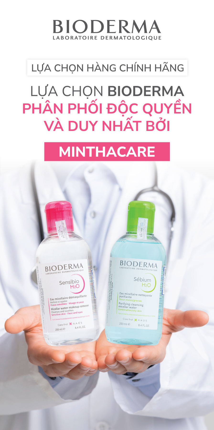 Bioderma chỉ có một nhà phân phối ĐỘC QUYỀN HỢP PHÁP CHÍNH THỨC tại VIỆT NAM - Công ty TNHH MINTHACARE. Tất cả các sản phẩm Bioderma do công ty Minthacare phân phối tại Việt Nam hiện vẫn đang được lưu hành hợp pháp, đảm bảo an toàn cho người tiêu dùng.