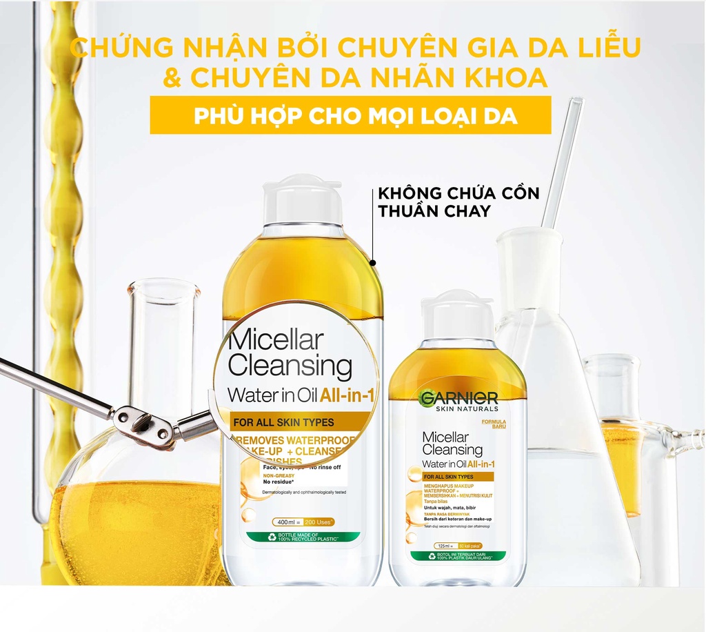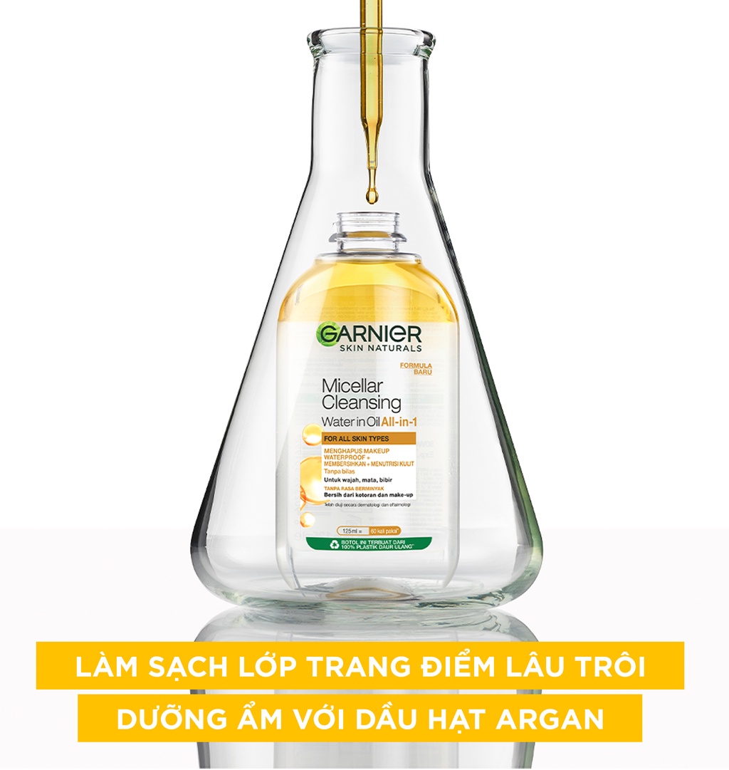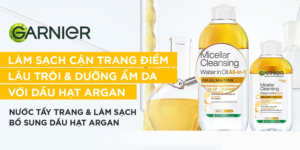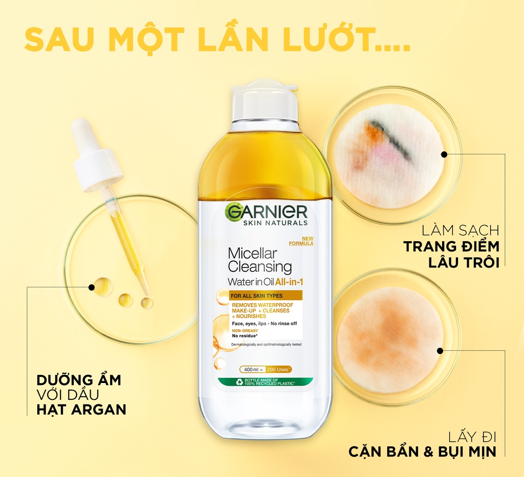 - Nước Tẩy Trang Garnier Micellar Oil Infused Cleansing Water với kết cầu gồm 2 phần tách biệt dầu và nước giúp hiệu quả làm sạch mạnh mẽ hơn so với dung dịch tẩy trang nước thông thường, vừa làm sạch da và vừa dưỡng da cho làn da luôn mềm mại và mịn màng.