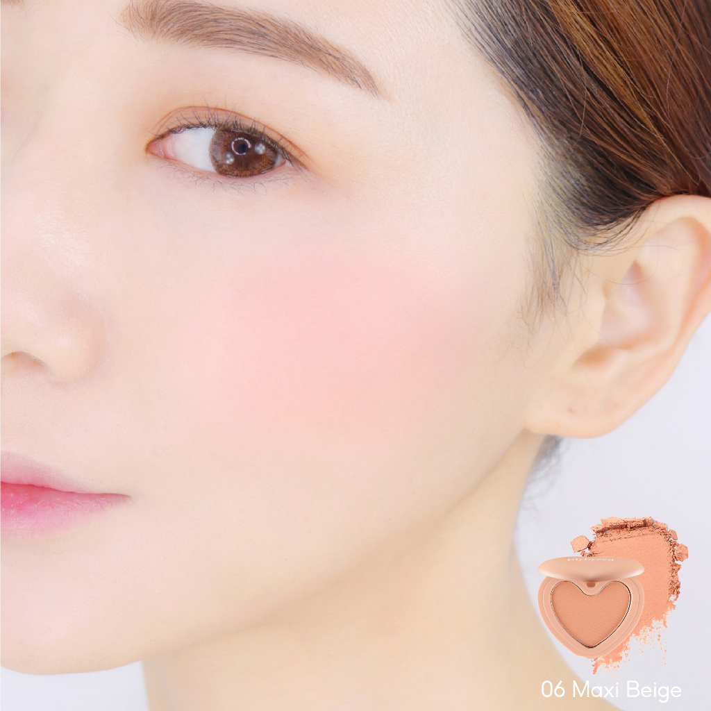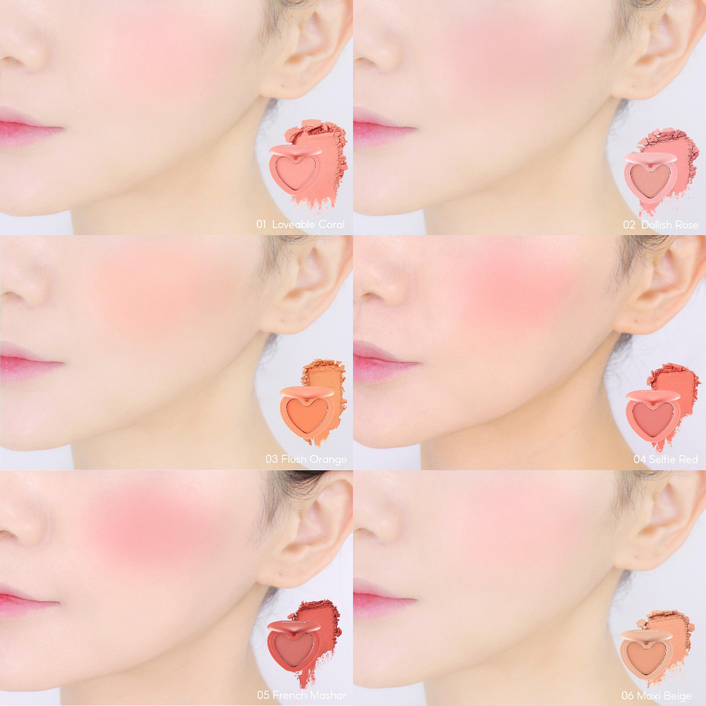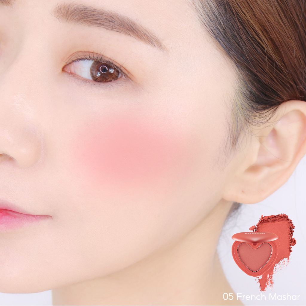 - Thiết kế xinh xắn, nhỏ gọn với hình trái tim có màu vỏ trùng với màu má hồng bên trong cho bạn dễ quan sát và lựa chọn