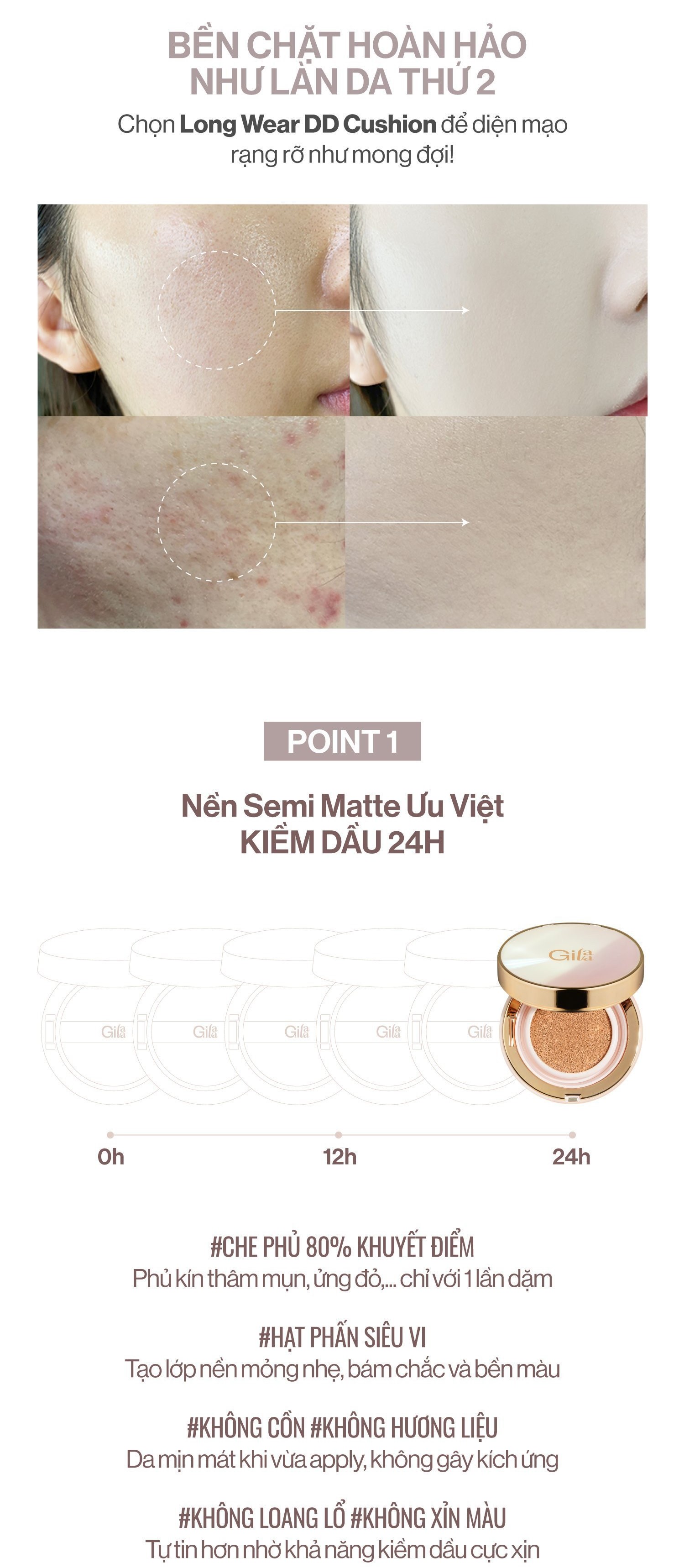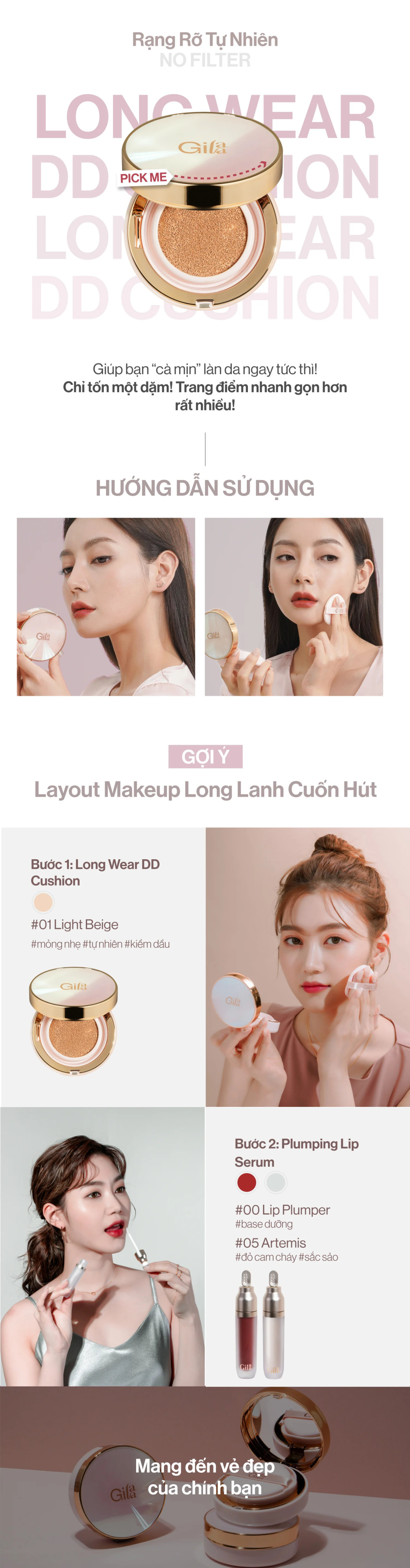 - Phấn Nước Che Phủ Mỏng Mịn, Kiềm Dầu Hiệu Quả Gilaa Long Wear DD Cushion (Dynamis - Do all) là dòng phấn nước cải tiến mới hoàn hảo, giúp khắc phục các nhược điểm thường gặp như nhanh trôi, loang lỗ, bết dính,...