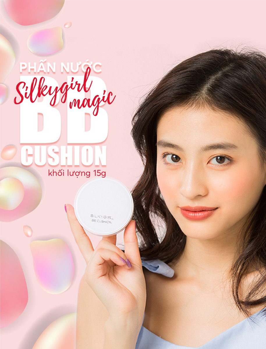 Phấn Nước Che Phủ Tốt, Kiềm Dầu Hiệu Quả Silkygirl Magic BB Cushion SPF50/PA+++ 15g là dòng sản phẩm phấn nước trang điểm cushion đến từ thương hiệu mỹ phẩm SILKYGIRL, với khả năng che phủ hiệu quả các khuyết điểm và kiềm dầu cao, giúp giữ lớp nền luôn tươi tắn và rạng rỡ suốt 12 giờ liền. Kết hợp cùng thành phần chiết xuất hoa nhung tuyết và nước khoáng giúp chống oxy hoá và cấp ẩm cho da, mang lại lớp nền mỏng mịn và tự nhiên. Ngoài ra, sản phẩm còn tích hợp thêm chỉ số chống nắng SPF50/PA+++ giúp bảo vệ da tối ưu.