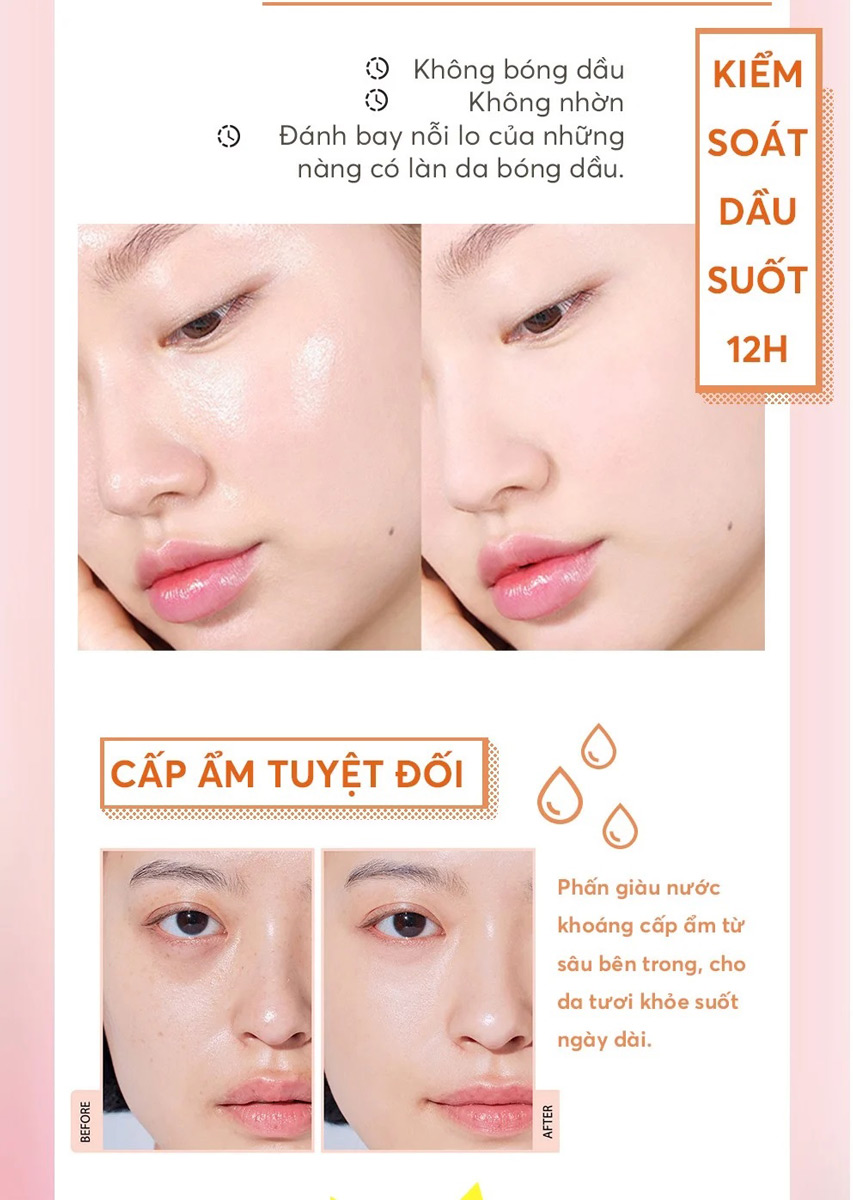 - Khả năng kiểm soát dầu lên đến 12h, giữ cho lớp nền luôn mịn đẹp và lâu xuống tông.