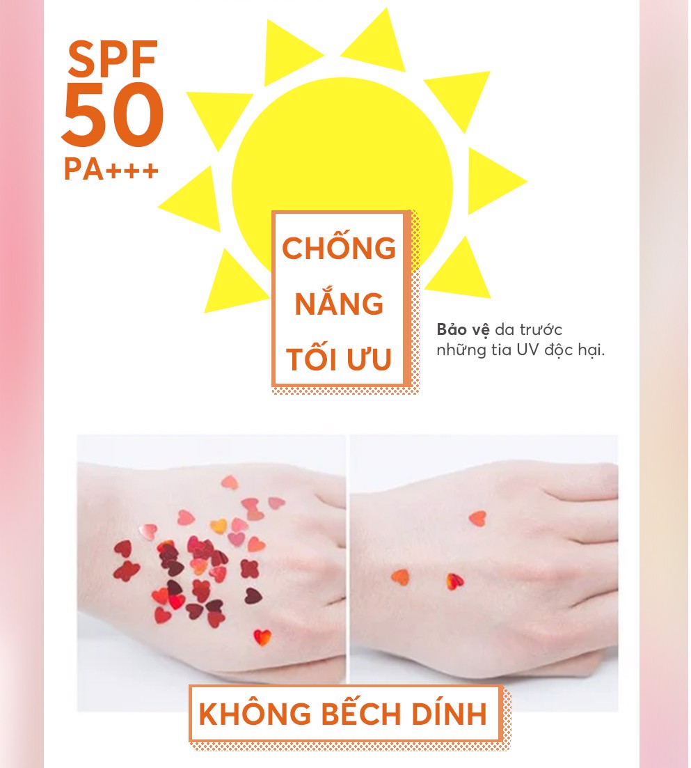 - Chỉ số chống nắng SPF50/PA+++ bảo vệ làn da khỏi tác động của ánh nắng mặt trời.