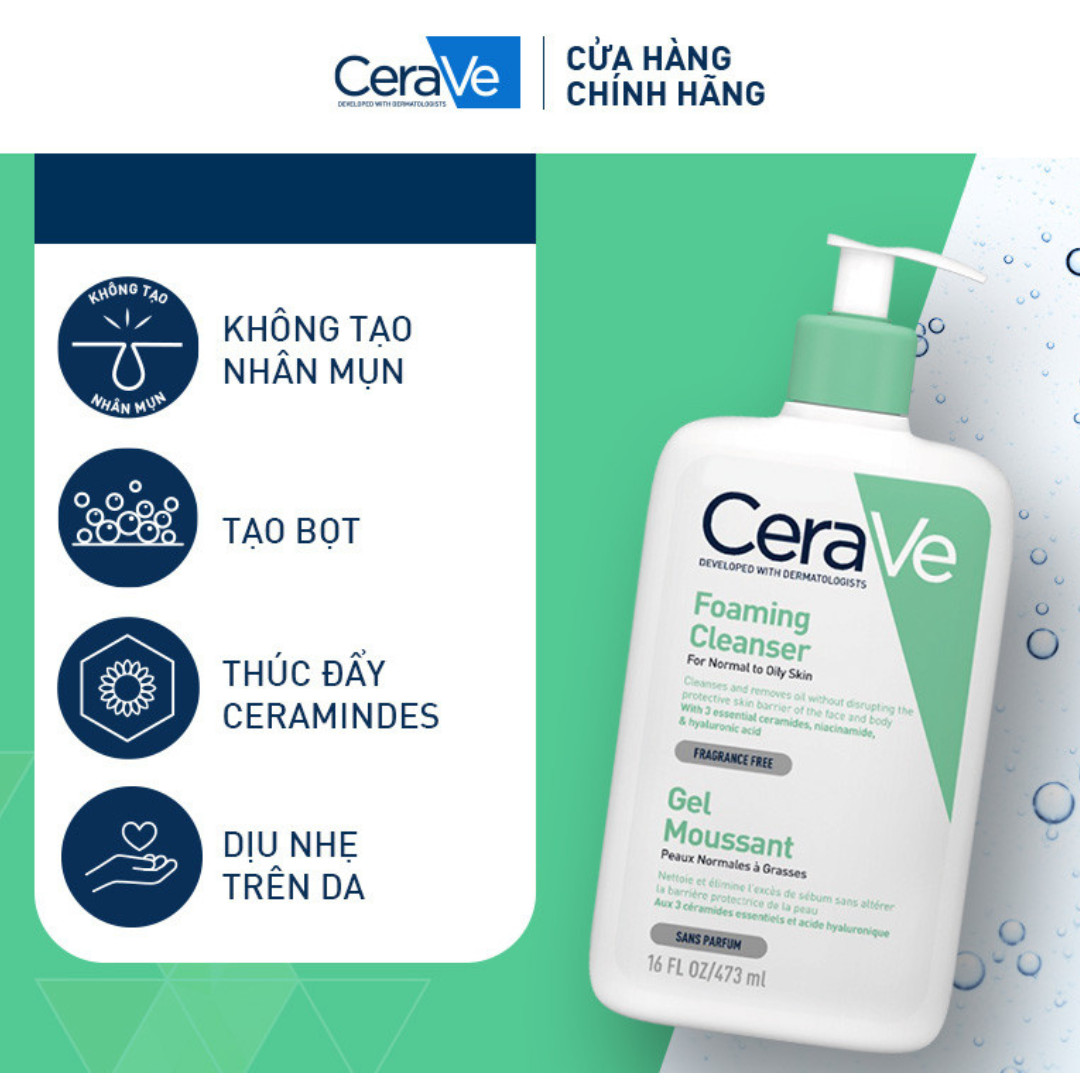 Sữa Rửa Mặt Da Cho Da Dầu CeraVe Foaming Facial Cleanser Oily Skin 473ml là sữa rửa mặt được phát triển bởi các bác sĩ da liễu tại Mỹ, và được các bác sĩ khuyên dùng hằng ngày vì độ dịu nhẹ cũng như khả năng làm sạch da lý tưởng cho da thường đến da dầu, kể cả da nhạy cảm nhất. CeraVe Foaming Facial Cleanser luôn nằm trong top những sữa rửa mặt bán chạy tại các trang phân phối mỹ phẩm.