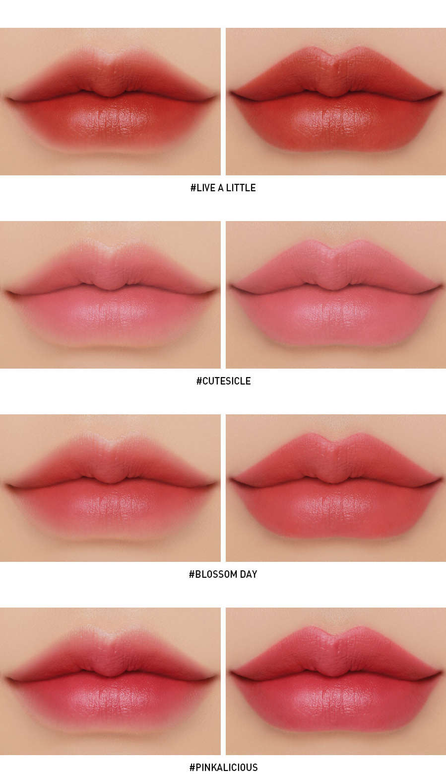 - Lớp finish ban đầu sẽ bóng nhẹ nhưng sau khi son set lại trên môi sẽ tạo hiệu ứng lì căng mọng.