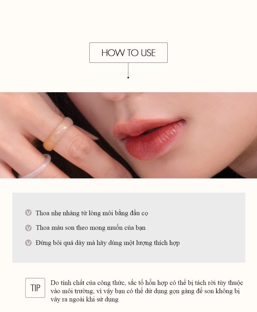 - Vì là son tint nên có độ bám màu cao, giữ màu lâu mà không gây cảm giác nặng môi