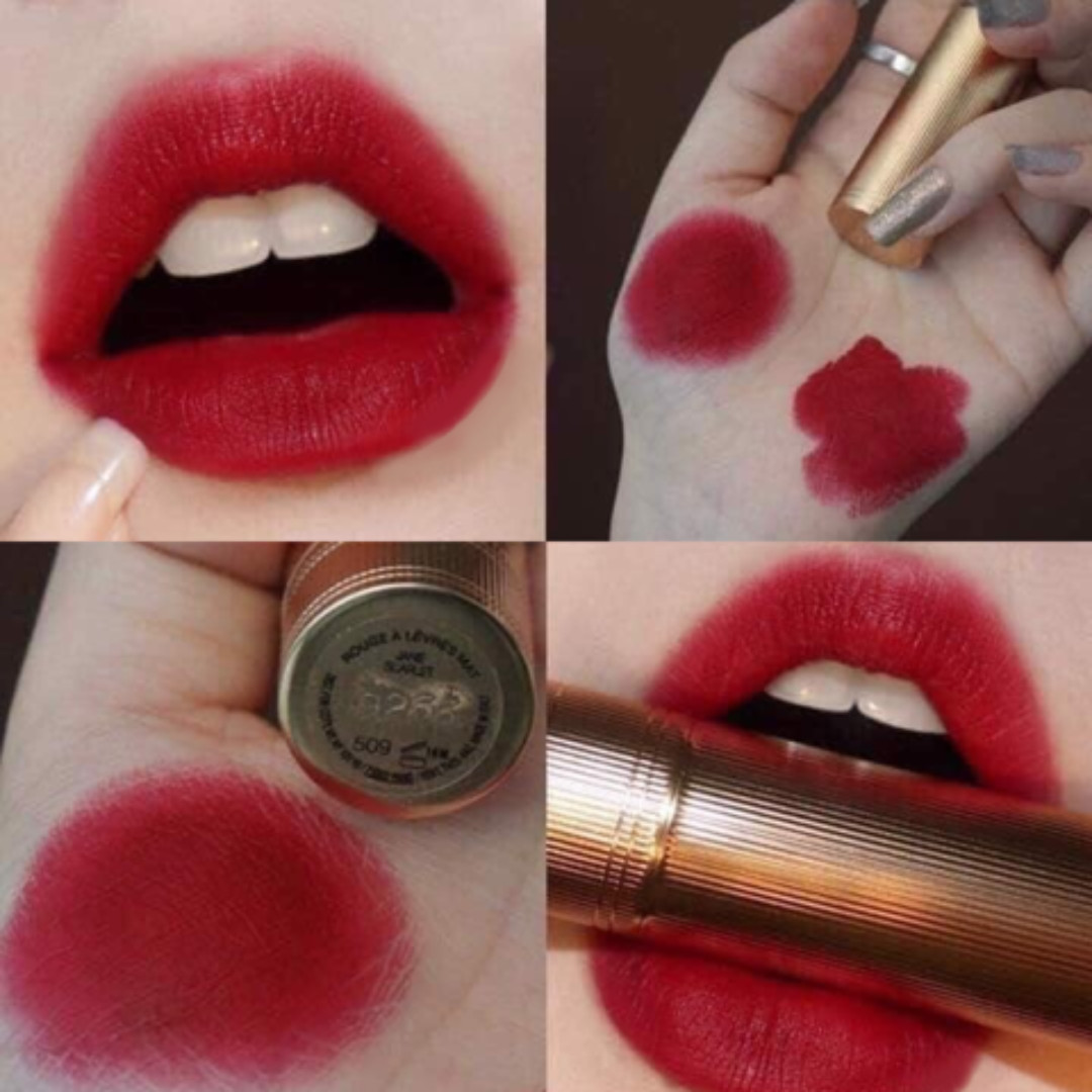 Son Sáp Gucci Rouge À Lèvres Voile Mat #509 Janie Scarlet - Đỏ Lạnh là thỏi son limited được thương hiệu Gucci cho ra mắt đến người hâm mộ nhân dịp lễ giáng sinh và mùa lễ hội cuối năm ấm áp. Ngay từ khi vừa ra mắt, Gucci 509 Janie Scarlet Xmas đã nhanh chóng nhận được nhiều sự yêu thích từ những tín đồ mê làm đẹp bởi màu son đỏ trầm sang chảnh cùng thiết kế thời thượng và mới mẻ.