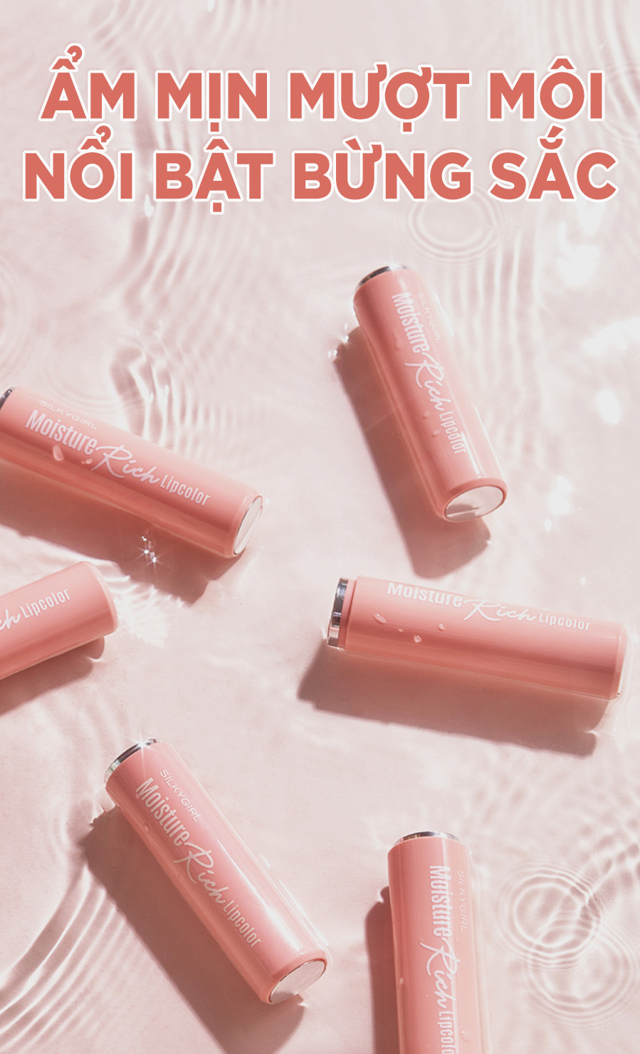 - Silkygirl Moisture Rich Lipcolor có vẻ ngoài vô cùng kẹo ngọt, xinh xắn, mang màu sắc như nữ sinh mới lớn khi được bao phủ màu hồng baby nhẹ nhàng, nữ tính.