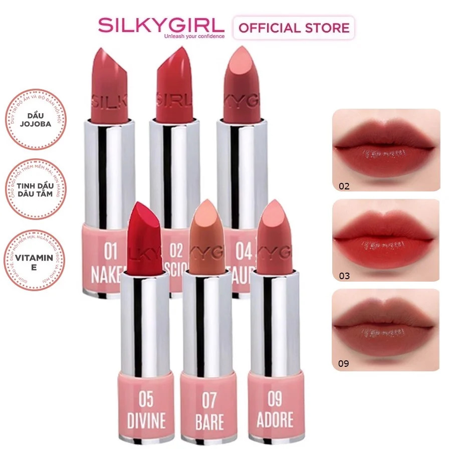 - Silkygirl Moisture Rich Lipcolor được ra mắt với 6 màu sắc khác nhau, bảng màu tuy không quá đa dạng nhưng các màu sắc đều rất trendy và thời thượng.