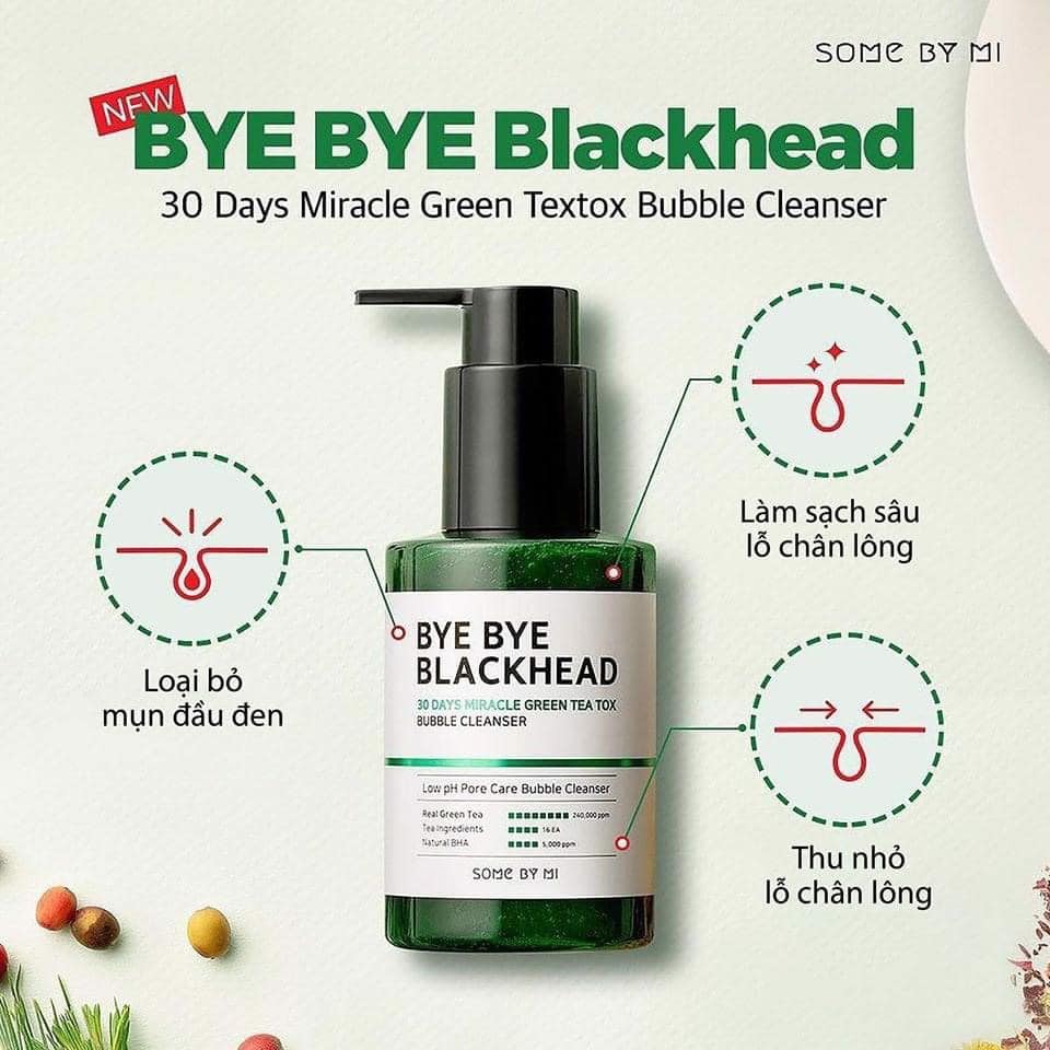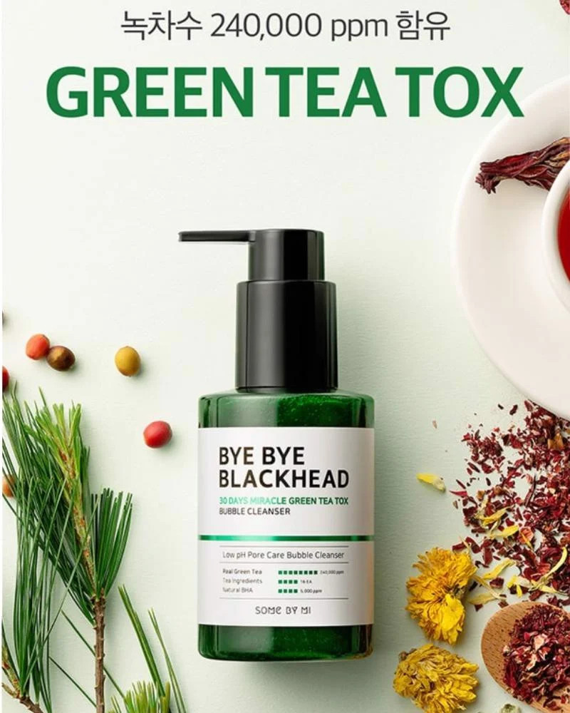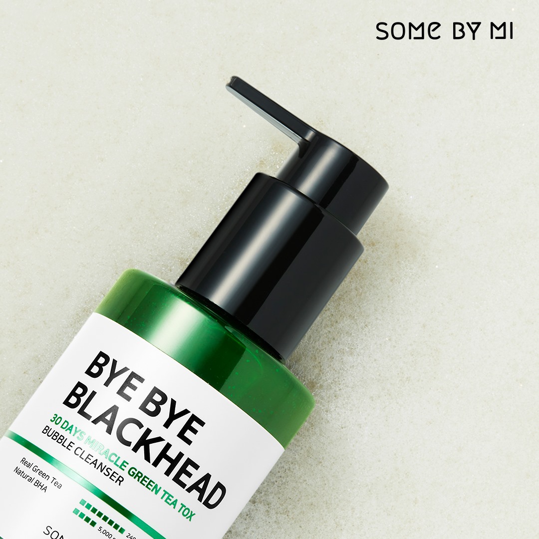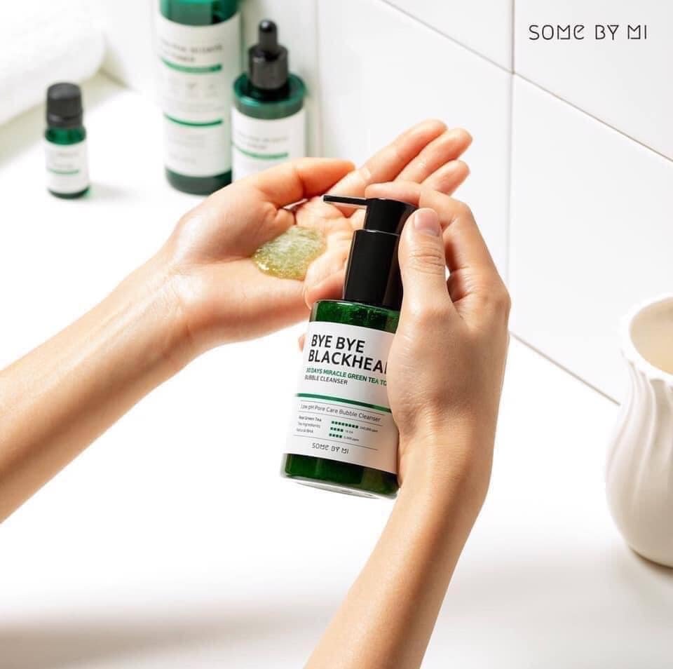 Sữa Rửa Mặt Sủi Bọt Loại Bỏ Mụn Đầu Đen Some By Mi Bye Bye Blackhead 30 Days Miracle Green Tea Tox Bubble Cleanser là sữa rửa mặt sủi bọt thuộc thương hiệu Some By Mi làm sạch sâu giúp loại bỏ bã nhờn và mụn đầu đen. Làm sạch dịu nhẹ không gây căng kít nhờ BHA tự nhiên và chiết xuất thảo mộc thiên nhiên.