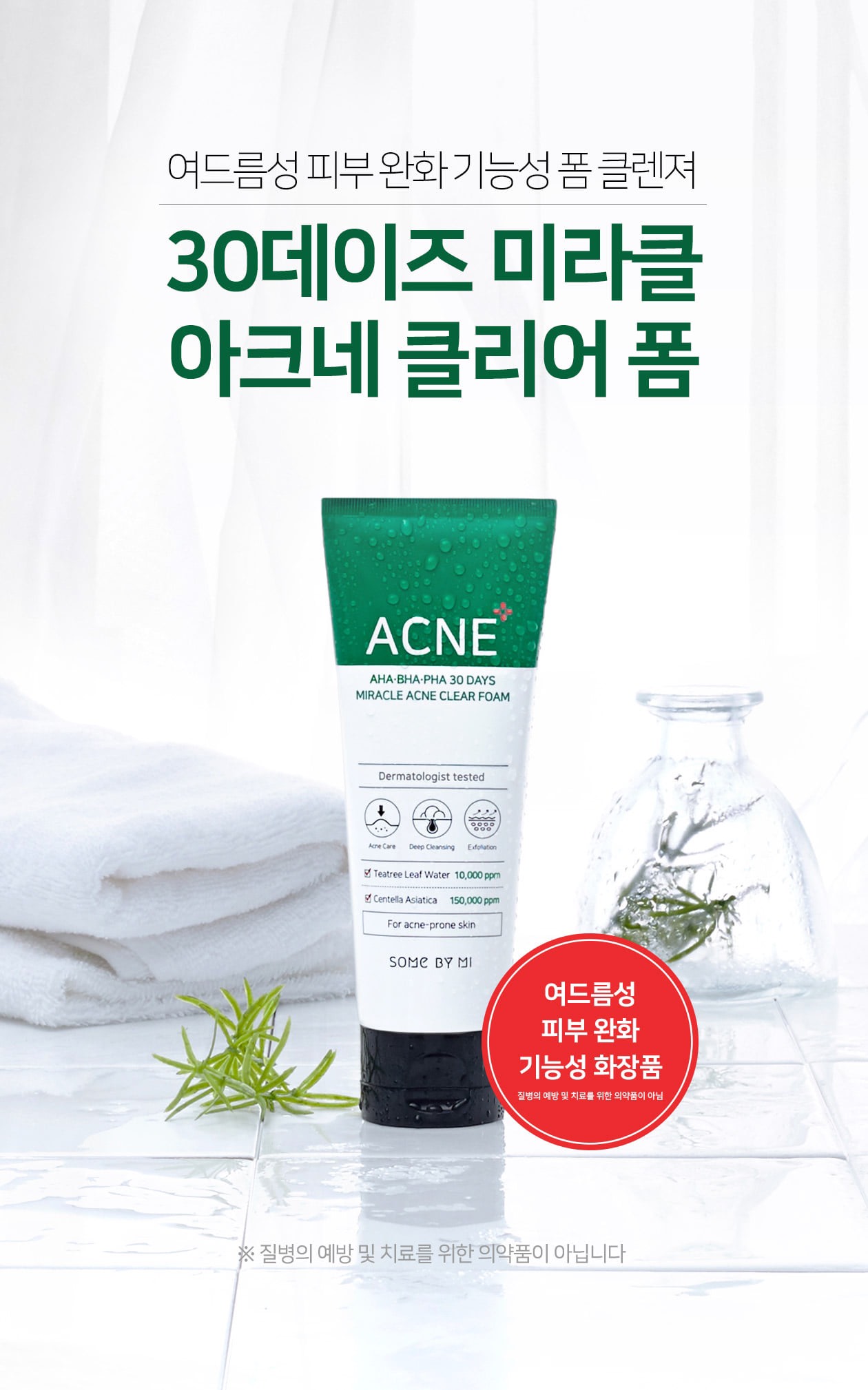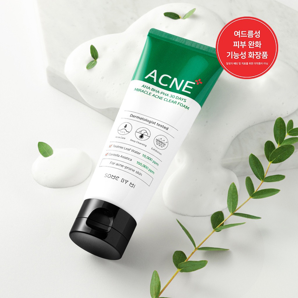- Sữa Rửa Mặt Some By Mi AHA-BHA-PHA 30 Days Miracle Acne Clear Foam với hoạt chất TruecicaTM độc quyền của Some By Mi chứa nhiều thành phần thiên nhiên như ngải cứu, tràm trà và rau má giúp làm dịu và giảm kích ứng cho làn da tổn thương, ngăn ngừa mụn hiệu quả.