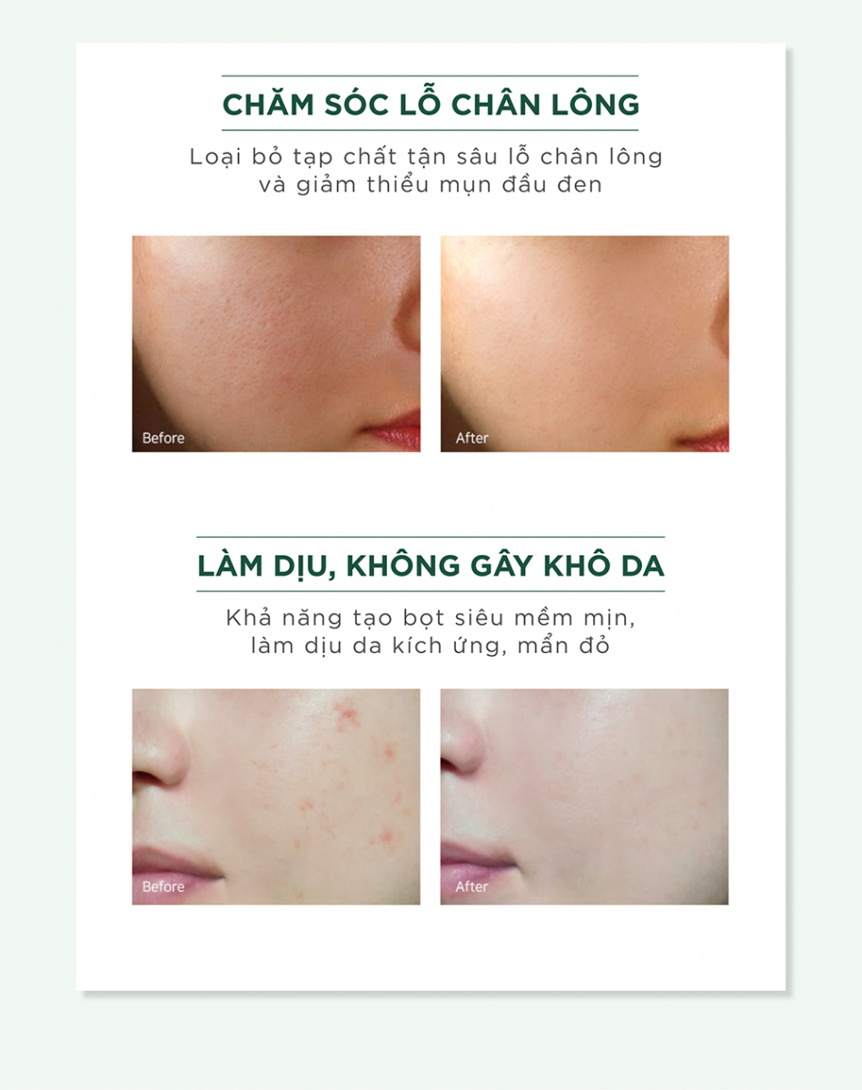 ∞ Hướng dẫn sử dụng: Sau khi tẩy trang, lấy một lượng vừa đủ vào lòng bàn tay và tạo bọt, thoa đều lên mặt và massage nhẹ nhàng theo chiếu kết cấu ca. Sau đó rửa lại với nước sạch