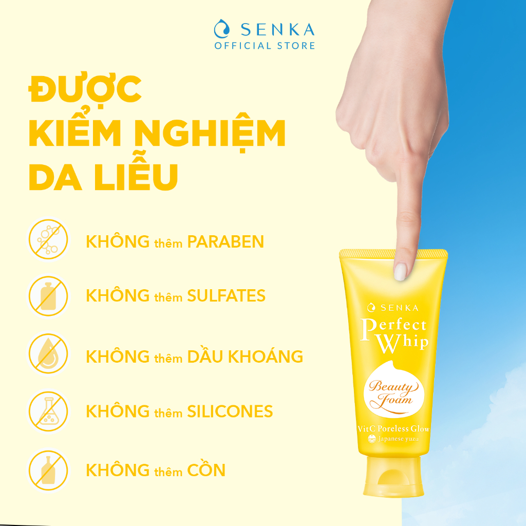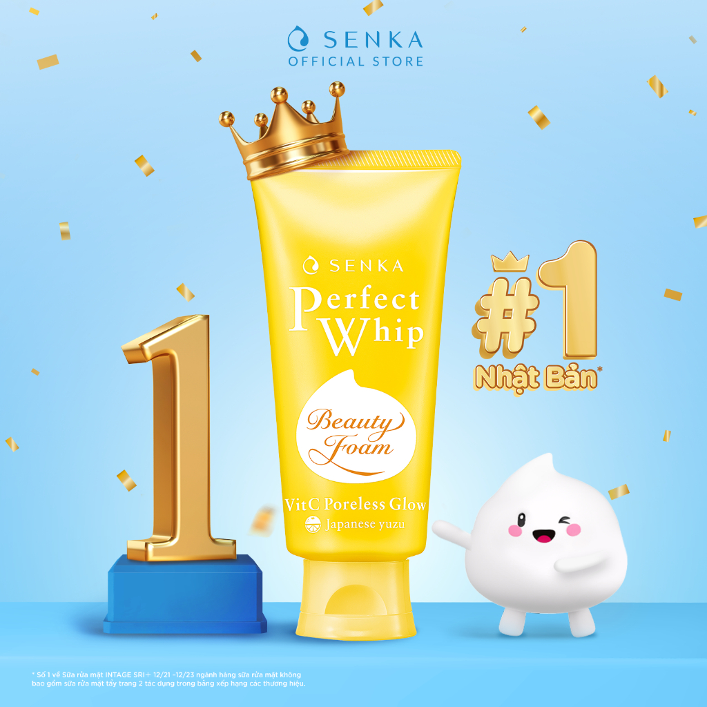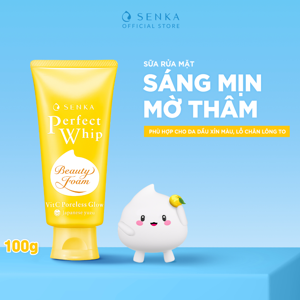 - Sữa Rửa Mặt Dưỡng Trắng Senka Perfect Whip VitC Poreless Glow chứa BHA giúp thu nhỏ lỗ chân lông và loại bỏ 7 lớp tạp chất khiến da xỉn màu: bụi bẩn, bụi mịn, bã nhờn, tế bào da chết, mụn đầu đen, kem chống nắng và kể cả cặn trang điểm cho da sạch thoáng & mịn màng.