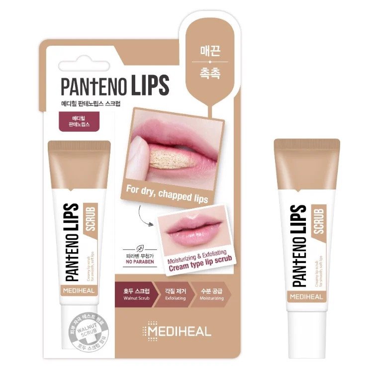 Tẩy Tế Bào Chết Môi Mediheal Pantenolips Scrub là tẩy tế môi có dạng kem, với hạt scrub vừa phải giúp nhẹ nhàng tẩy đi các tế bào chết cho đôi môi khô, bong tróc và mang lại một đôi môi mềm mịn, ẩm mượt và hồng hào thuộc thương hiệu Mediheal.